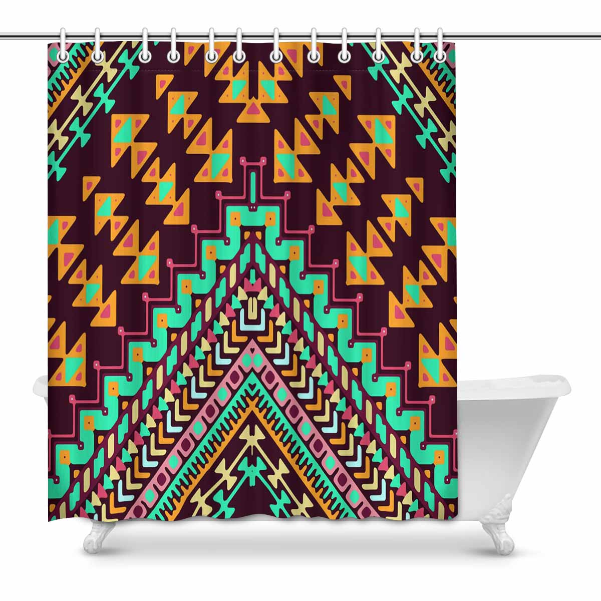 Bathroom Shower Curtain 60in x 72in with chevron pattern with aztec ethnic pattern