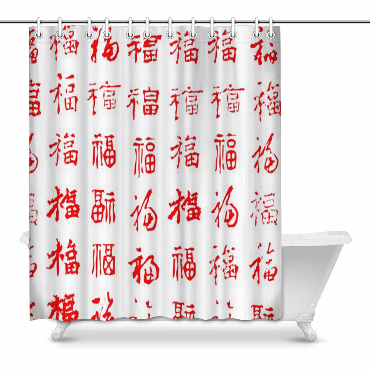 Bathroom Shower Curtain 60in x 72in with Chinese writing design pattern