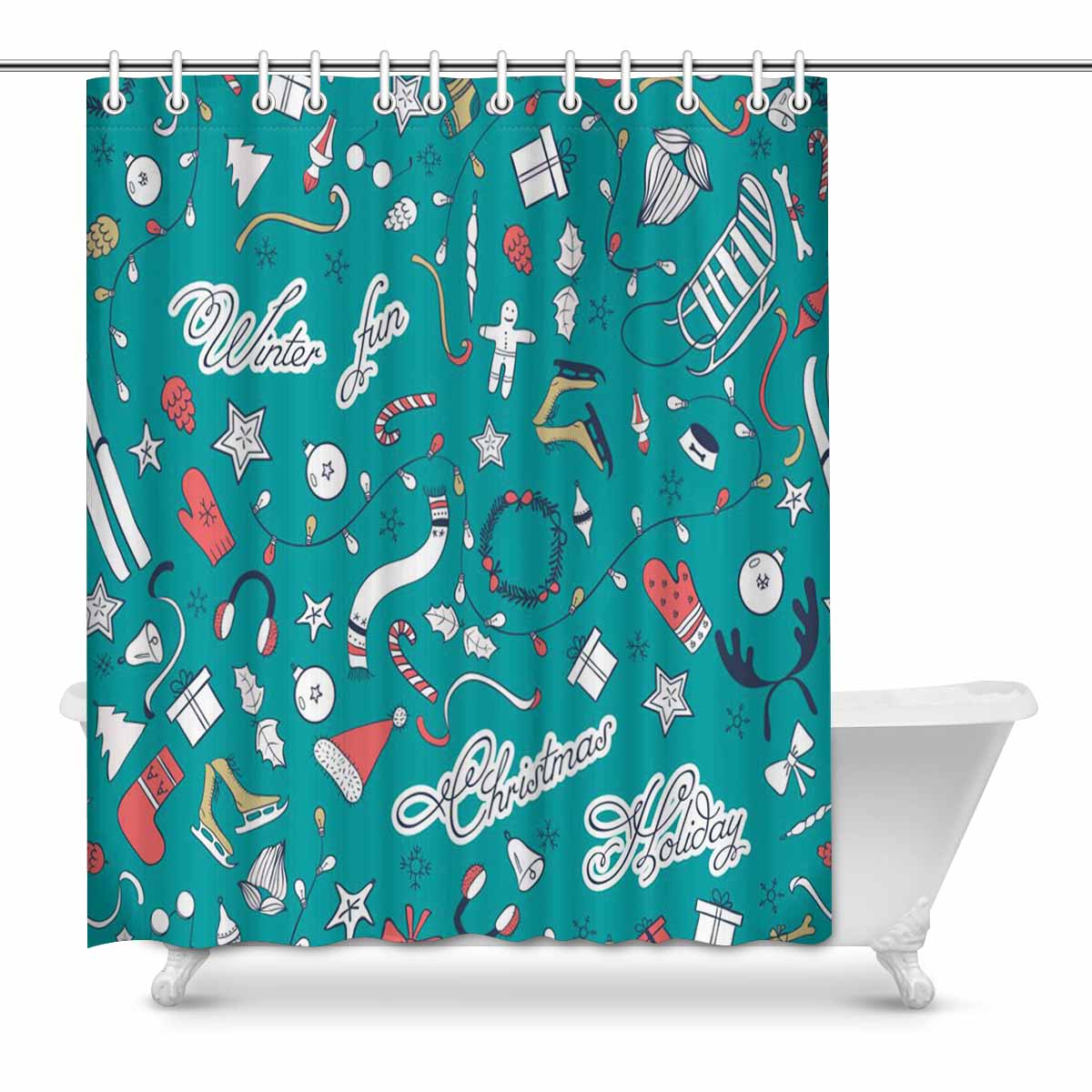 Bathroom Shower Curtain 60in x 72in with Christmas pattern with cartoon dog