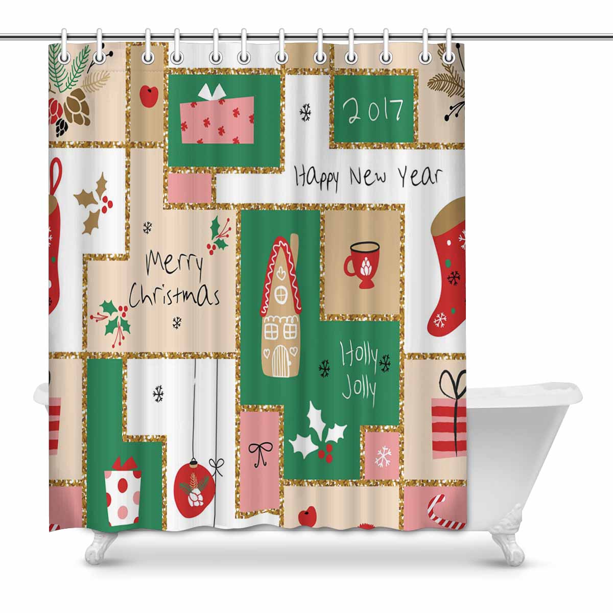 Bathroom Shower Curtain 60in x 72in with Christmas signs pattern