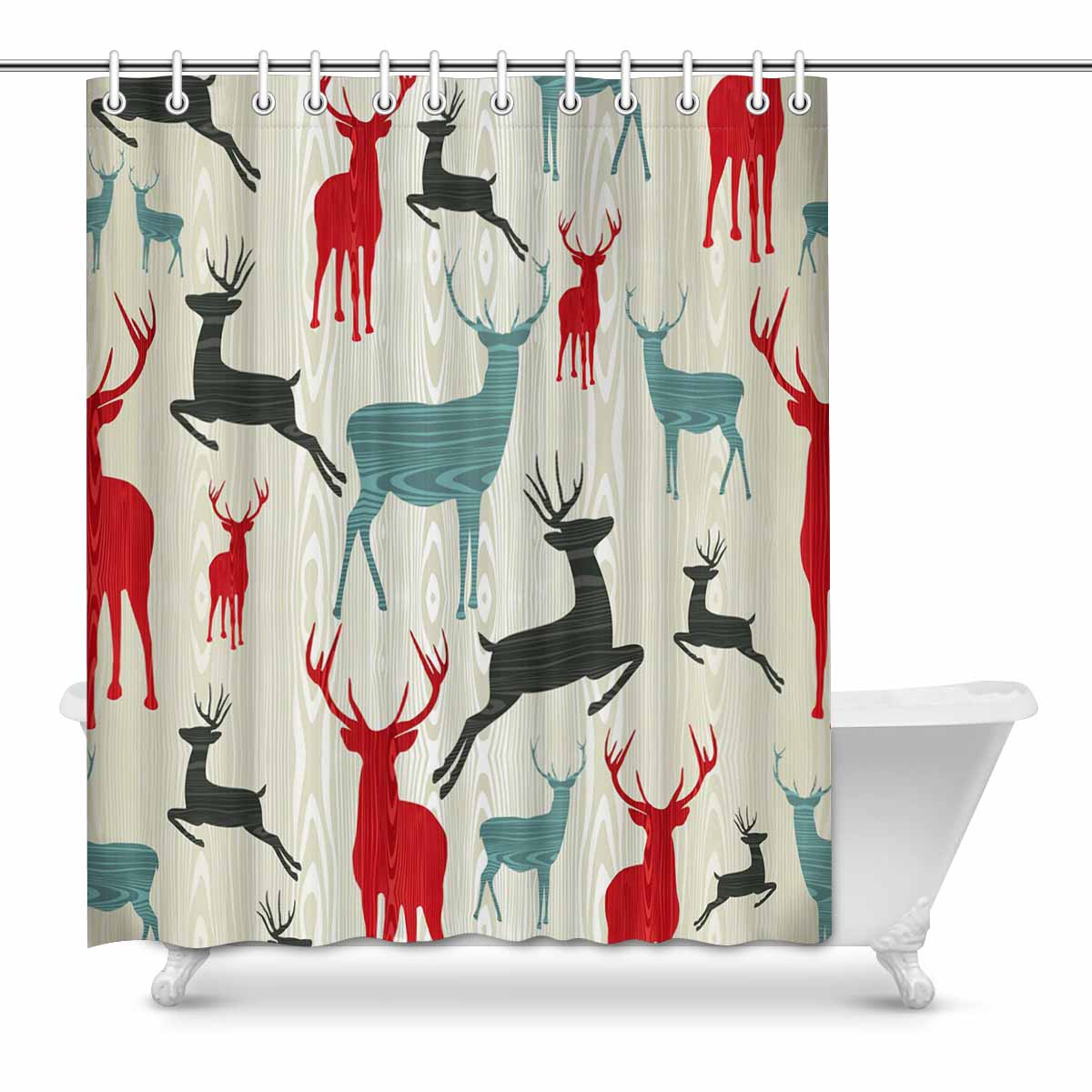 Bathroom Shower Curtain 60in x 72in with Christmas wooden reindeer pattern