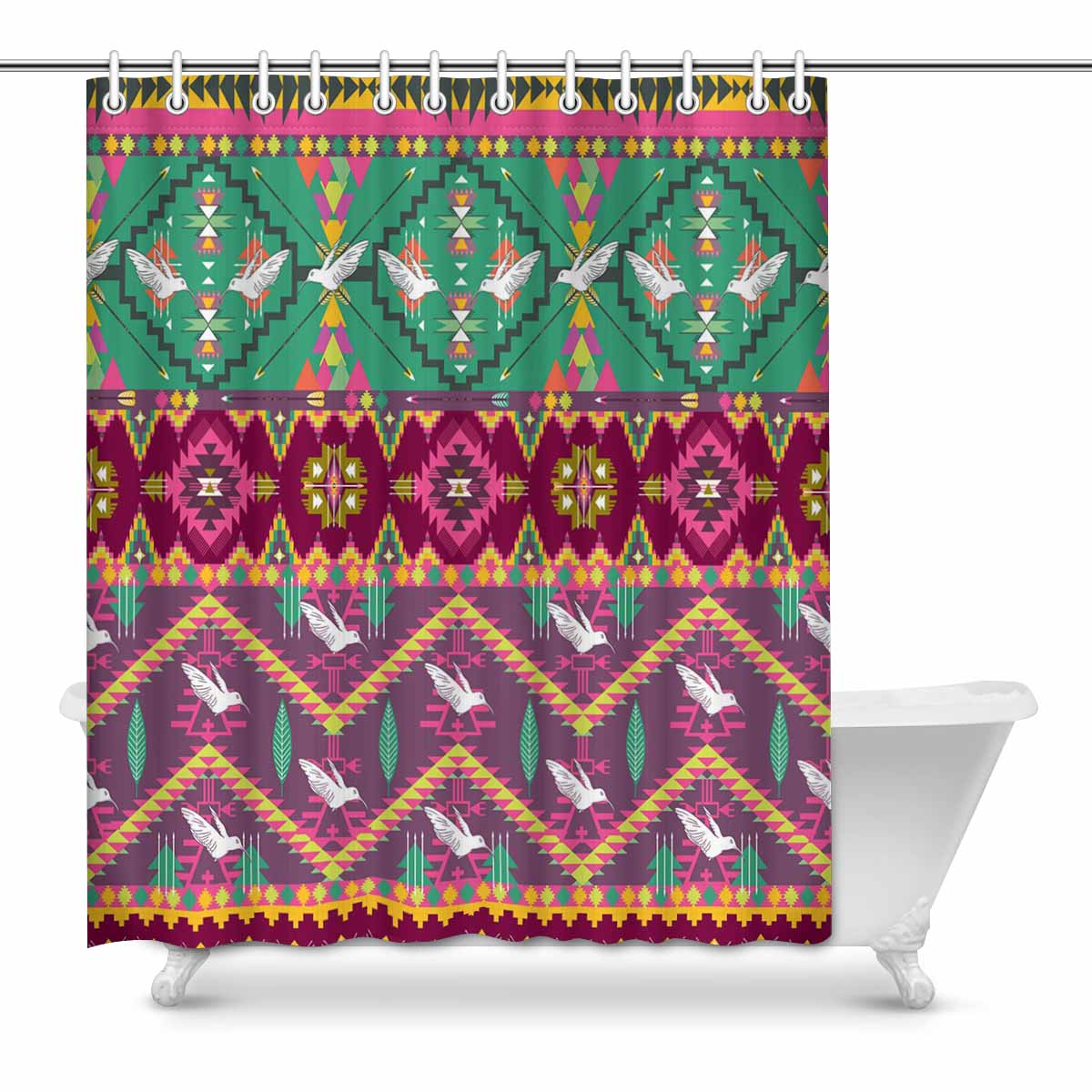 Bathroom Shower Curtain 60in x 72in with colored aztec pattern