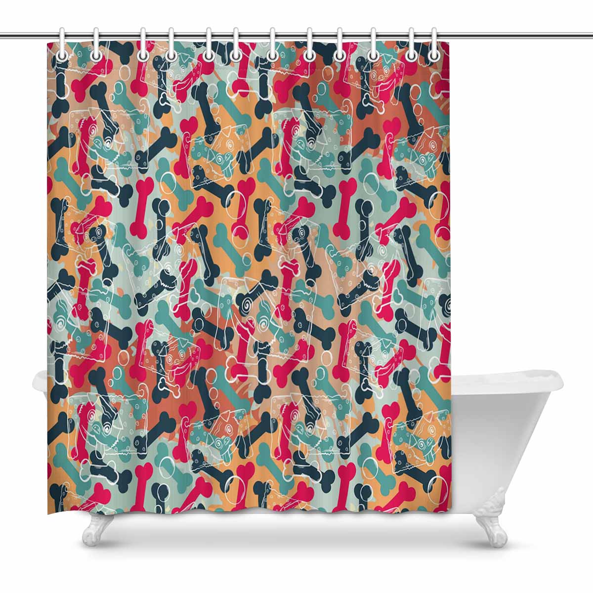 Bathroom Shower Curtain 60in x 72in with colored bones pattern