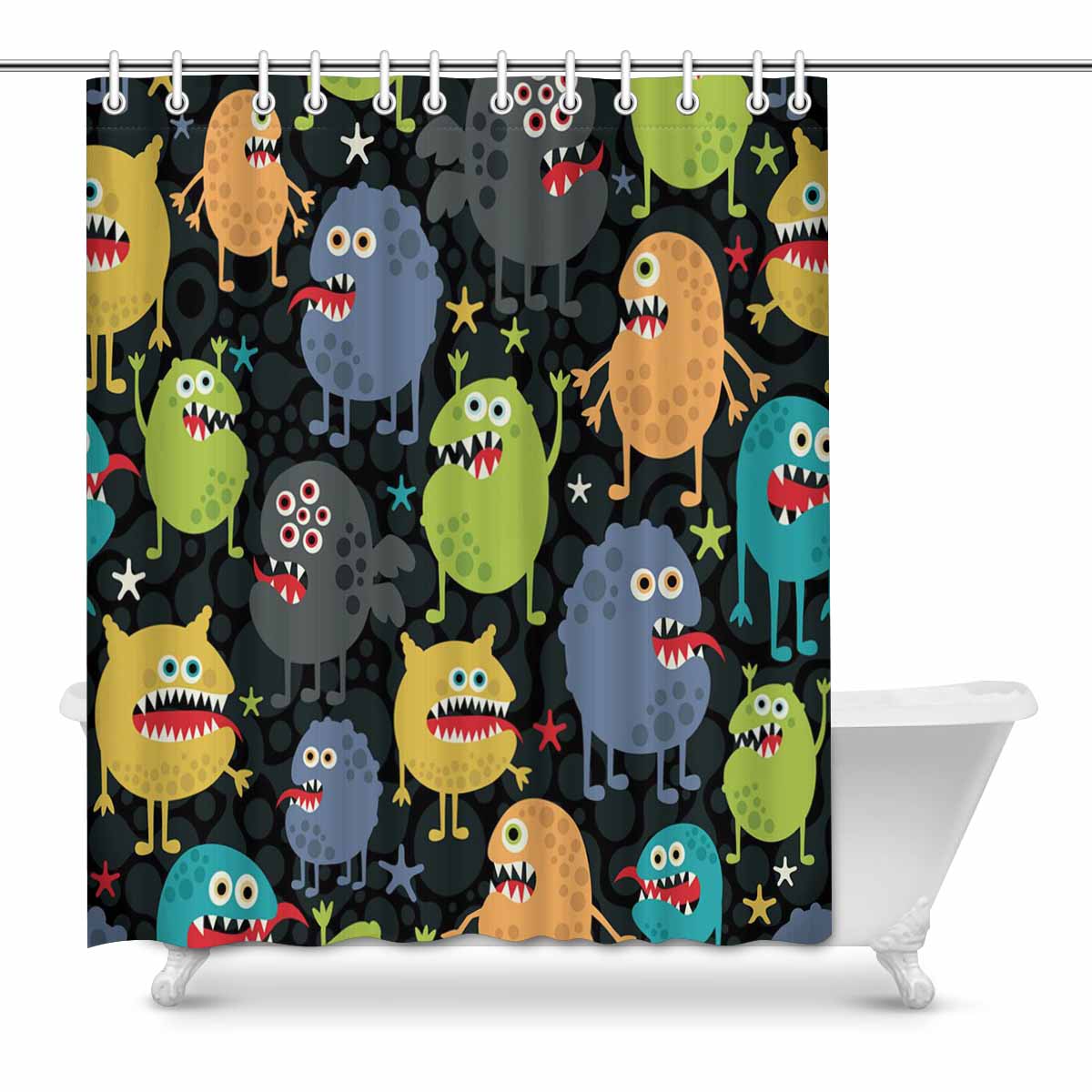 Bathroom Shower Curtain 60in x 72in with colored crazy monsters