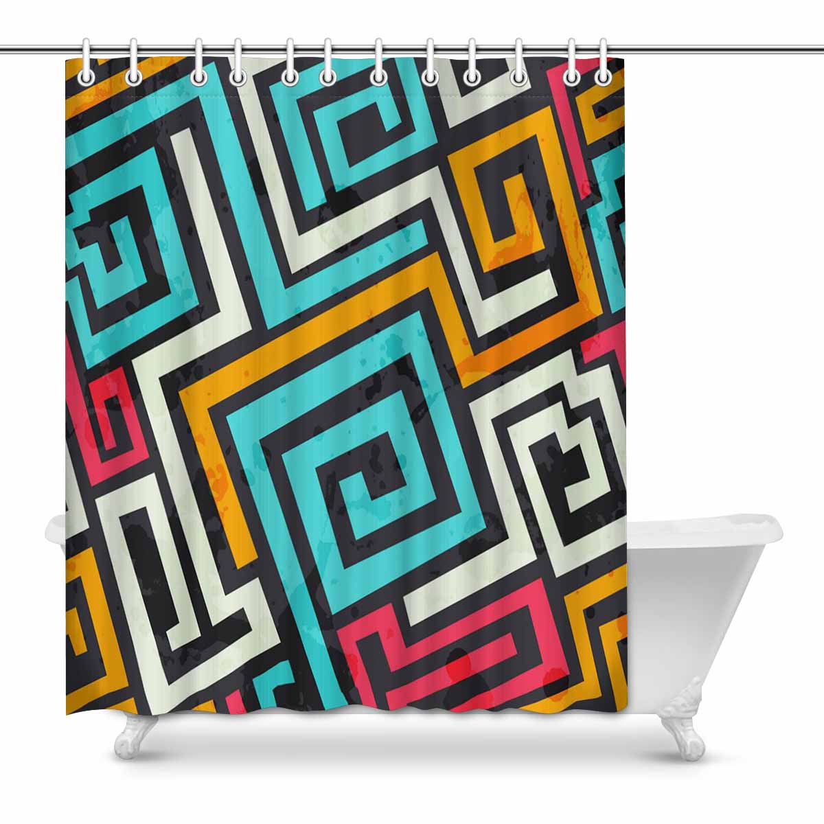 Bathroom Shower Curtain 60in x 72in with Colored square spiral pattern
