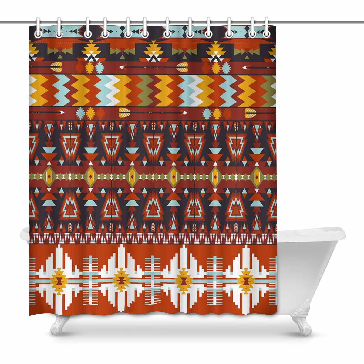Bathroom Shower Curtain 60in x 72in with colorful abstract geometric aztec pattern
