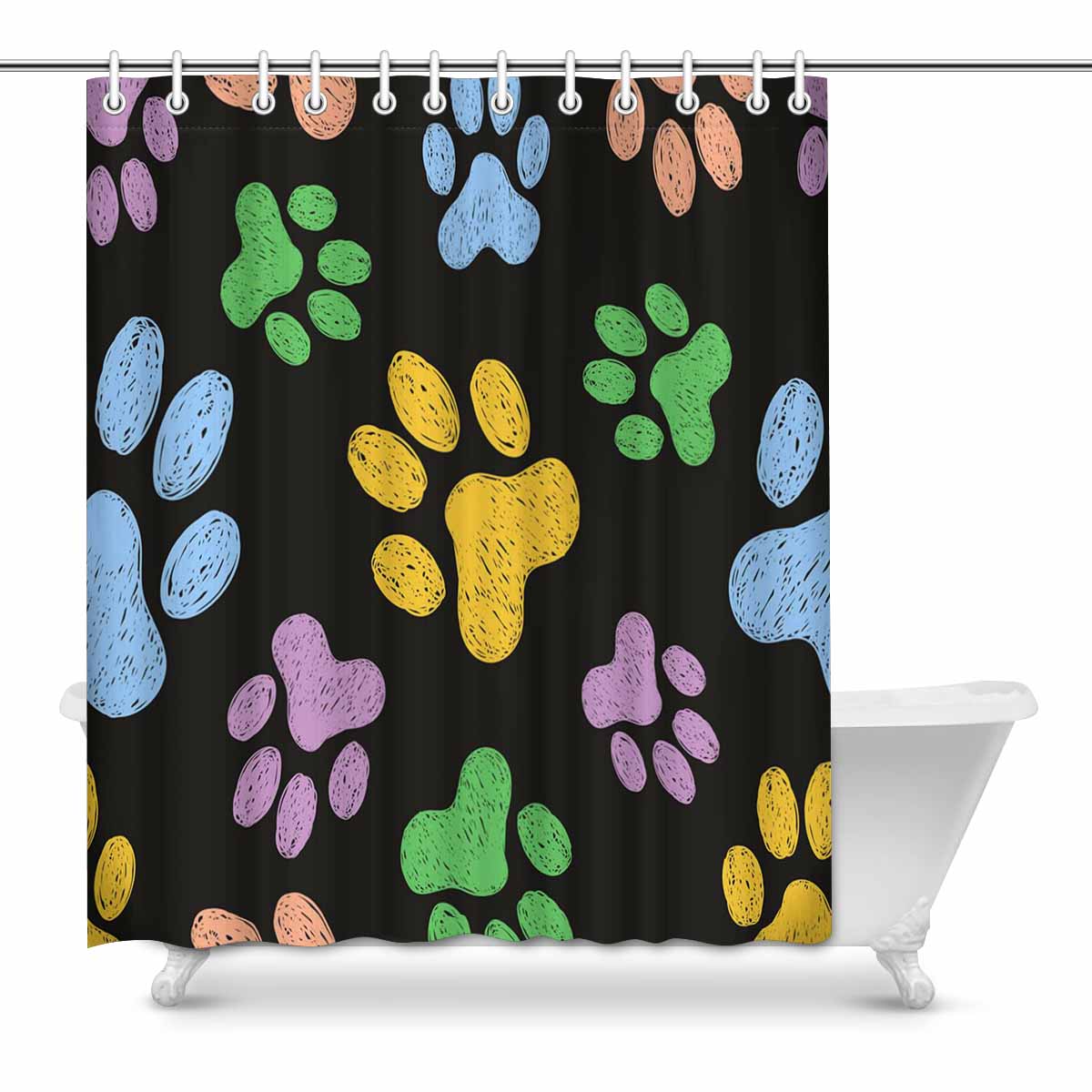 Bathroom Shower Curtain 60in x 72in with colorful animals footprint pattern
