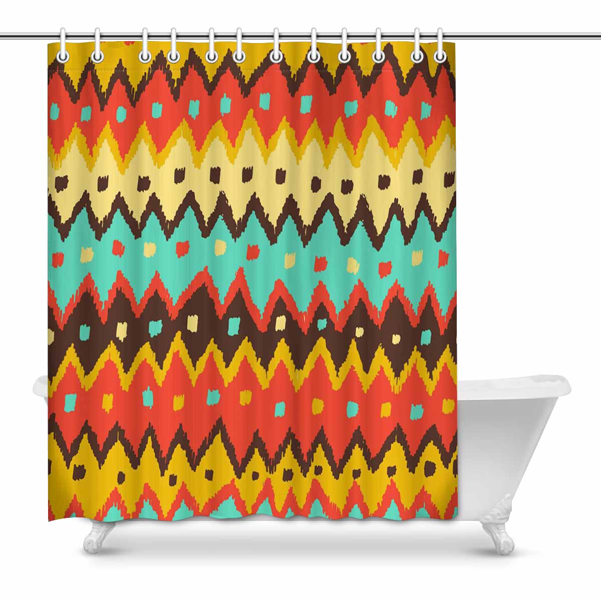 Bathroom Shower Curtain 60in x 72in with colorful aztec Abstract pattern
