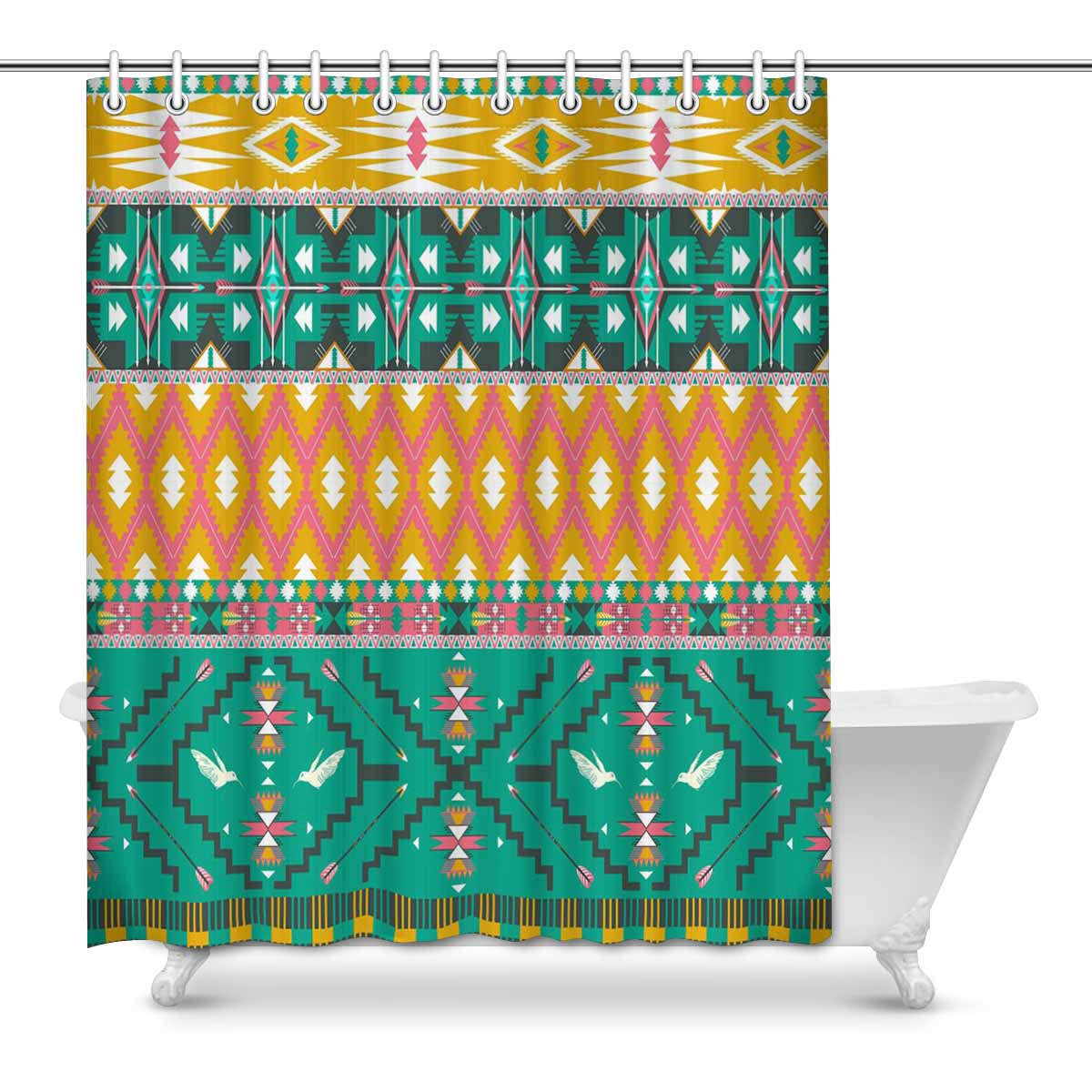 Bathroom Shower Curtain 60in x 72in with colorful aztec pattern with birds