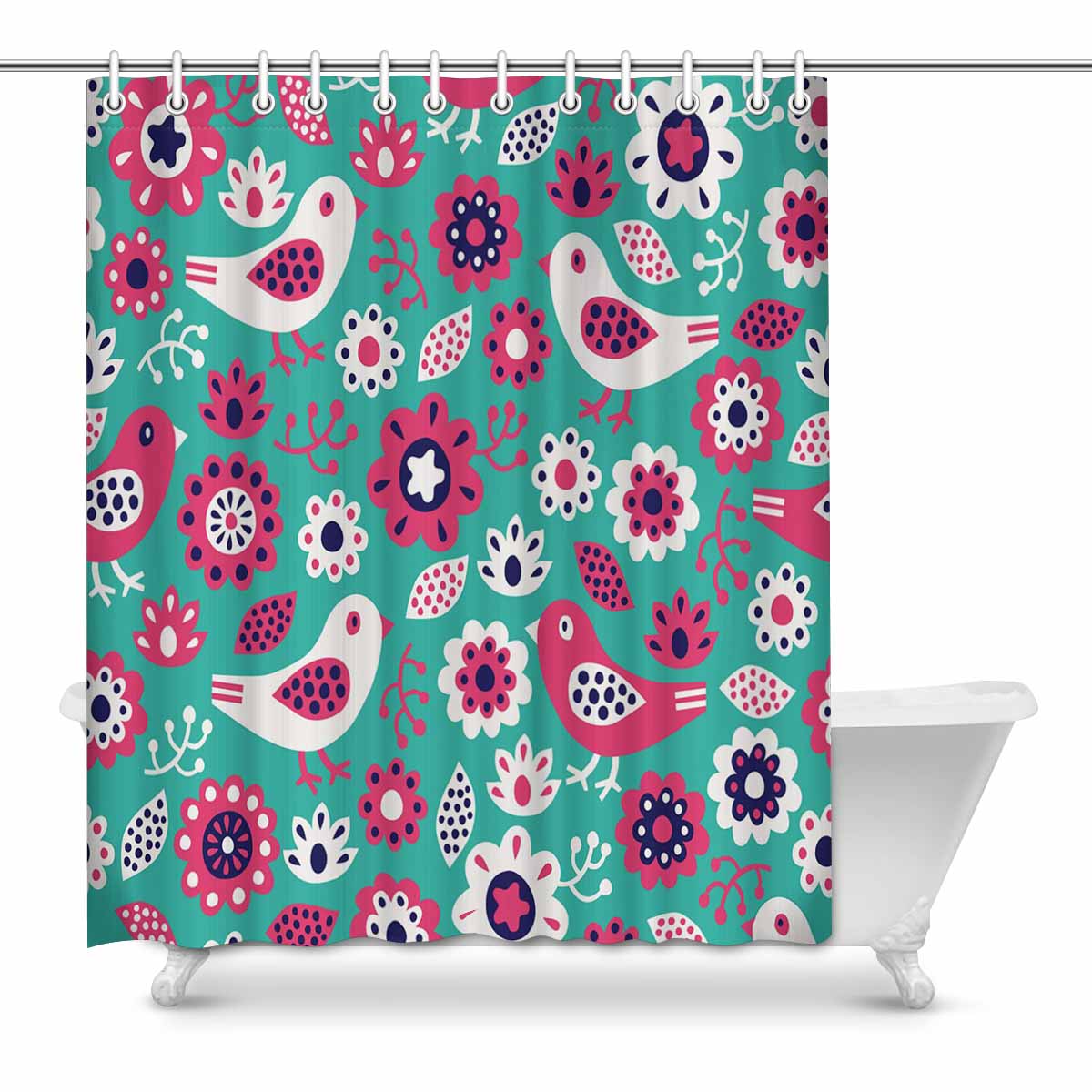 Bathroom Shower Curtain 60in x 72in with colorful Bird and flower