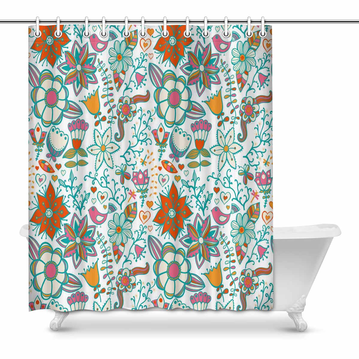 Bathroom Shower Curtain 60in x 72in with colorful birds with flowers