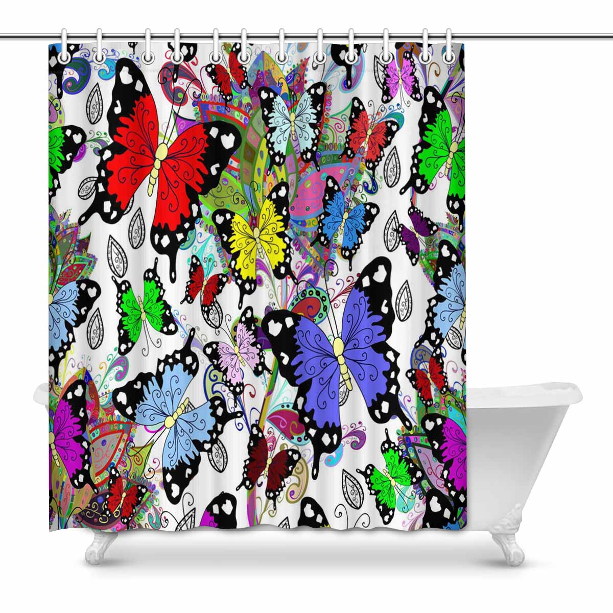 Bathroom Shower Curtain 60in x 72in with colorful Butterfly