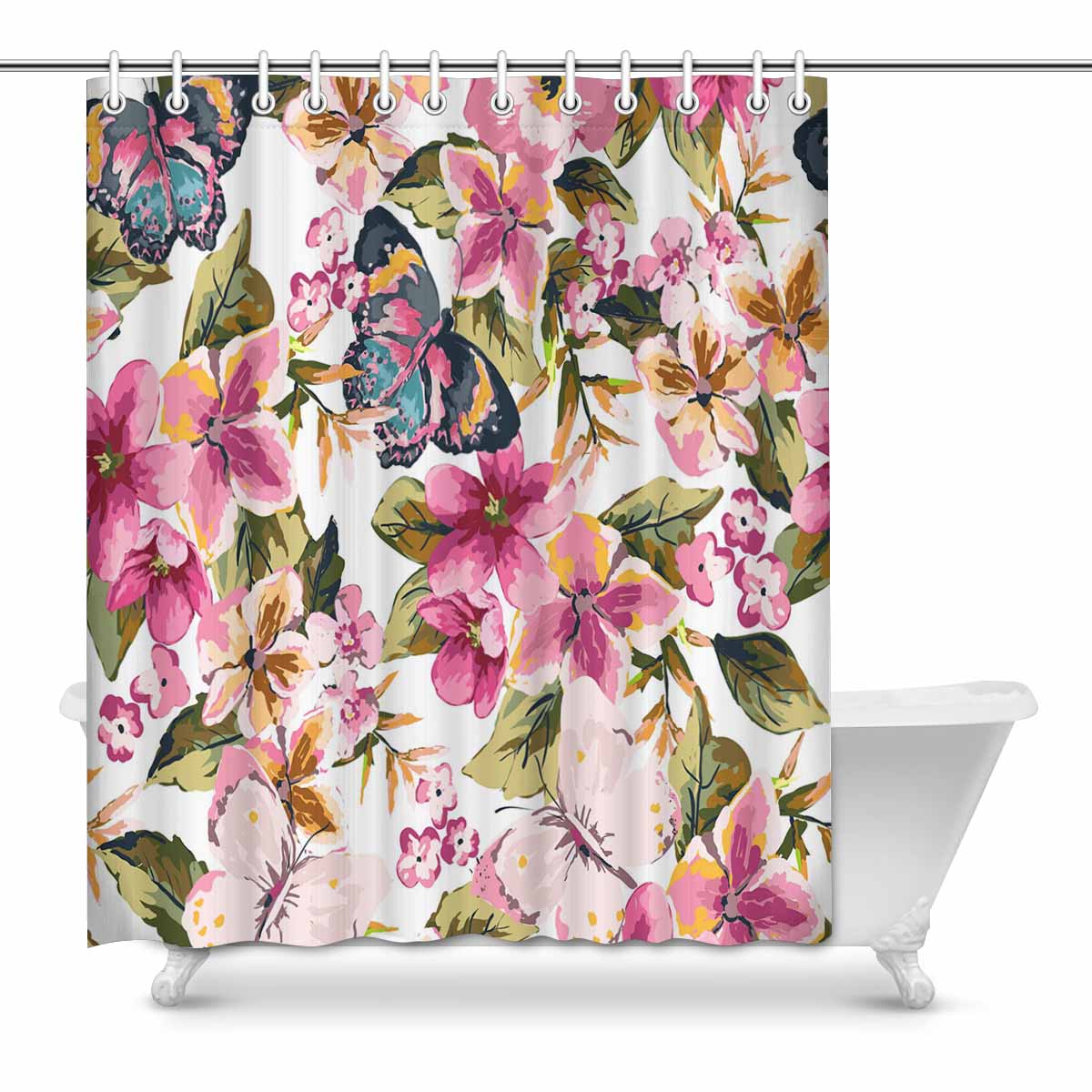 Bathroom Shower Curtain 60in x 72in with colorful Butterfly with floral