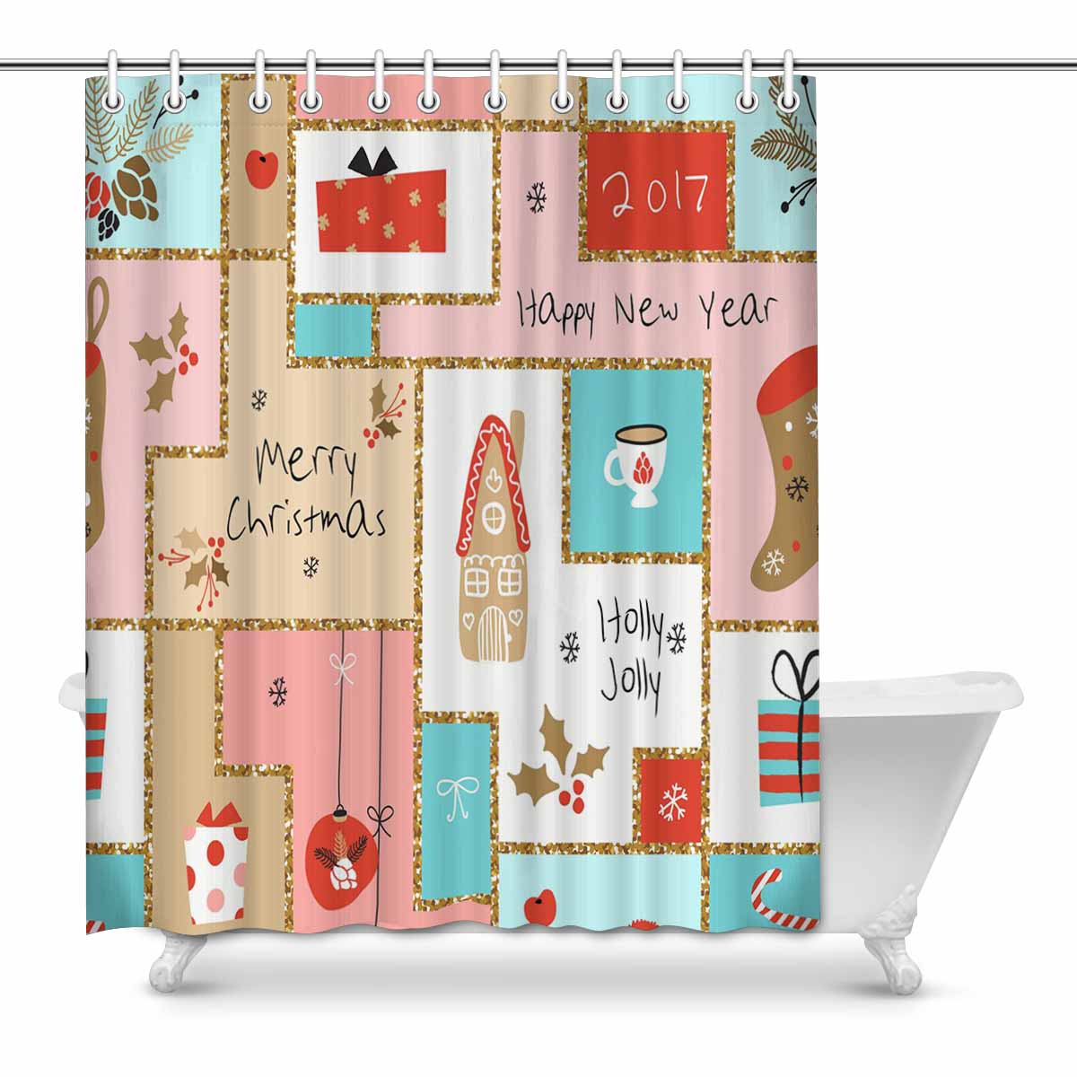 Bathroom Shower Curtain 60in x 72in with colorful Christmas signs