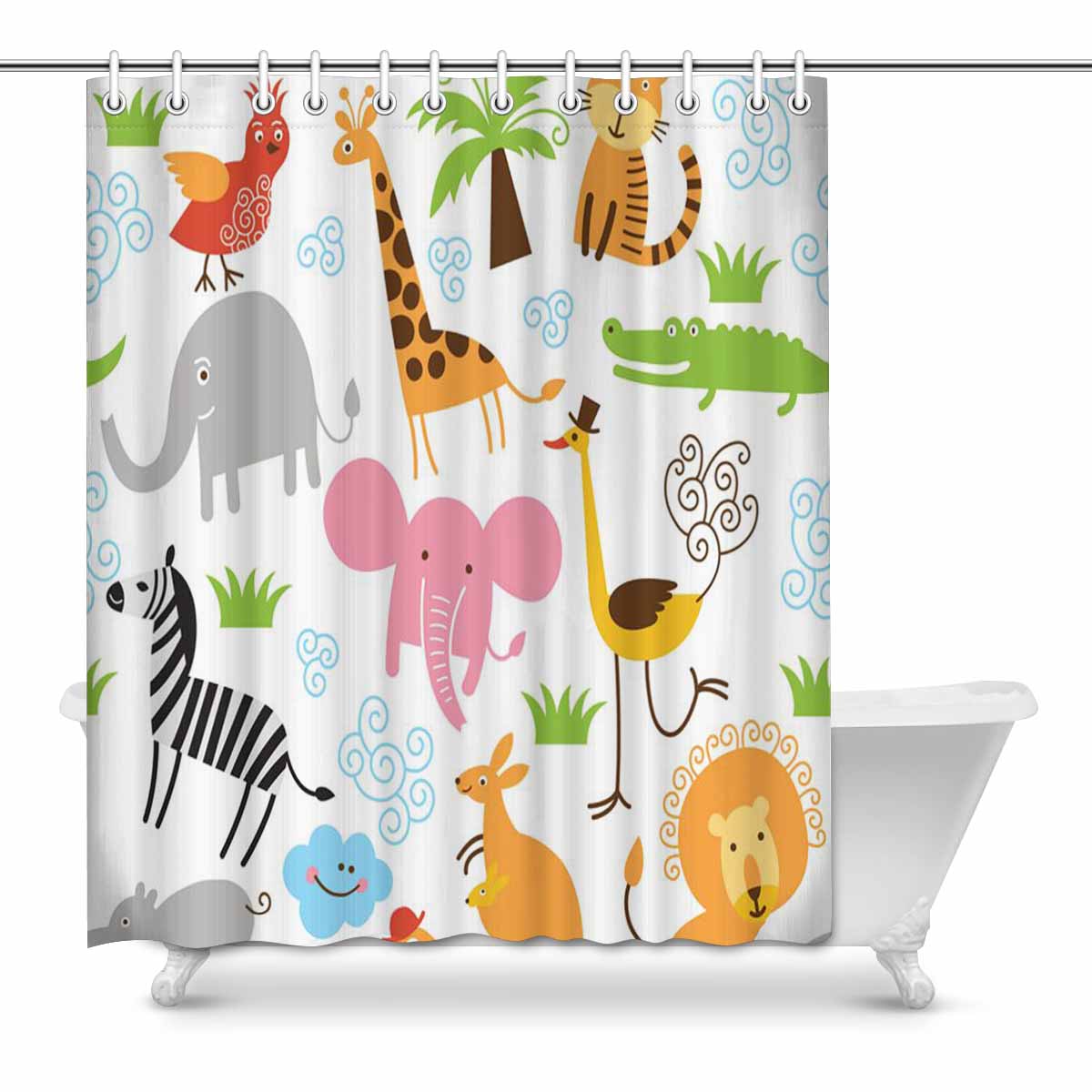 Bathroom Shower Curtain 60in x 72in with colorful cute animals pattern