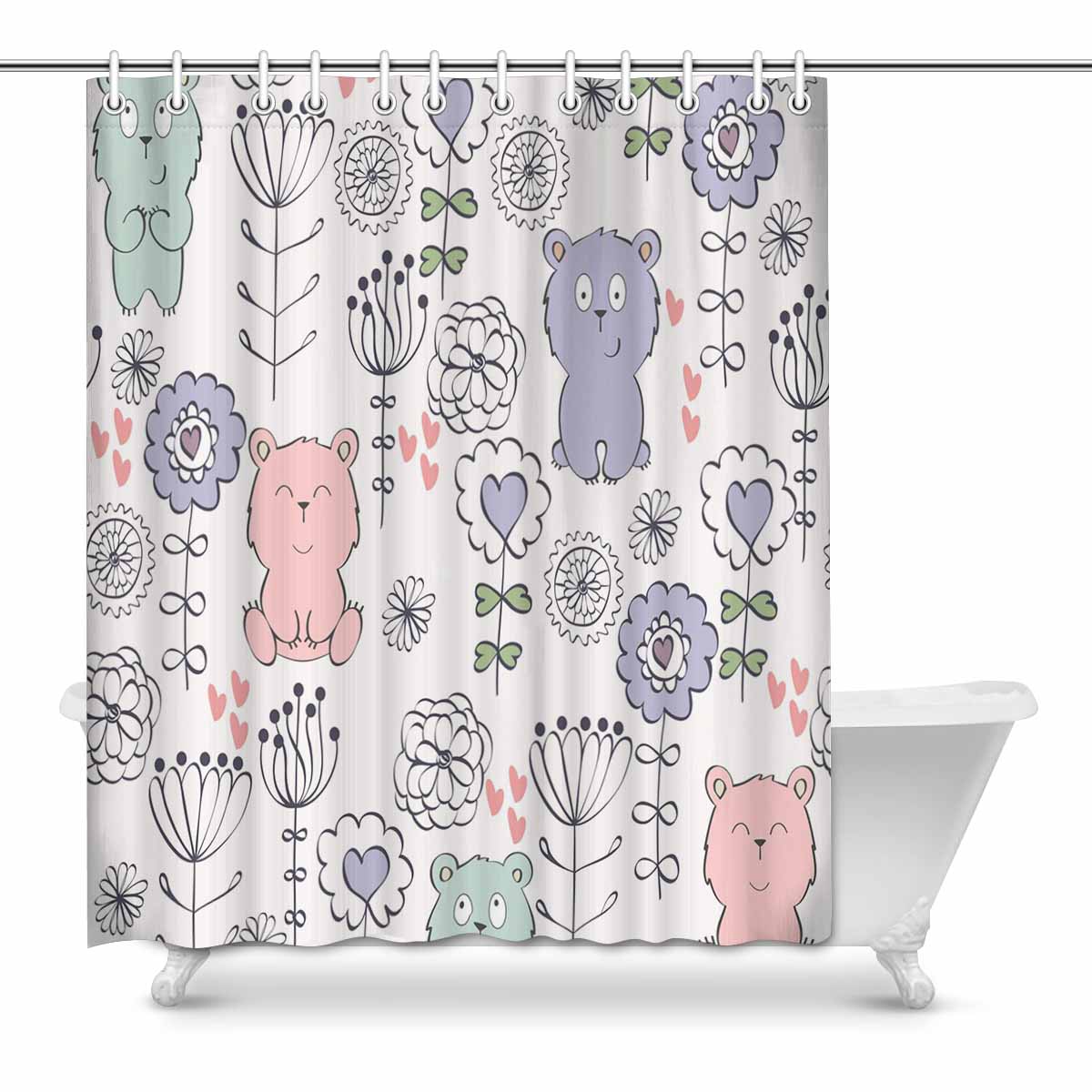 Bathroom Shower Curtain 60in x 72in with colorful cute bears with flowers pattern