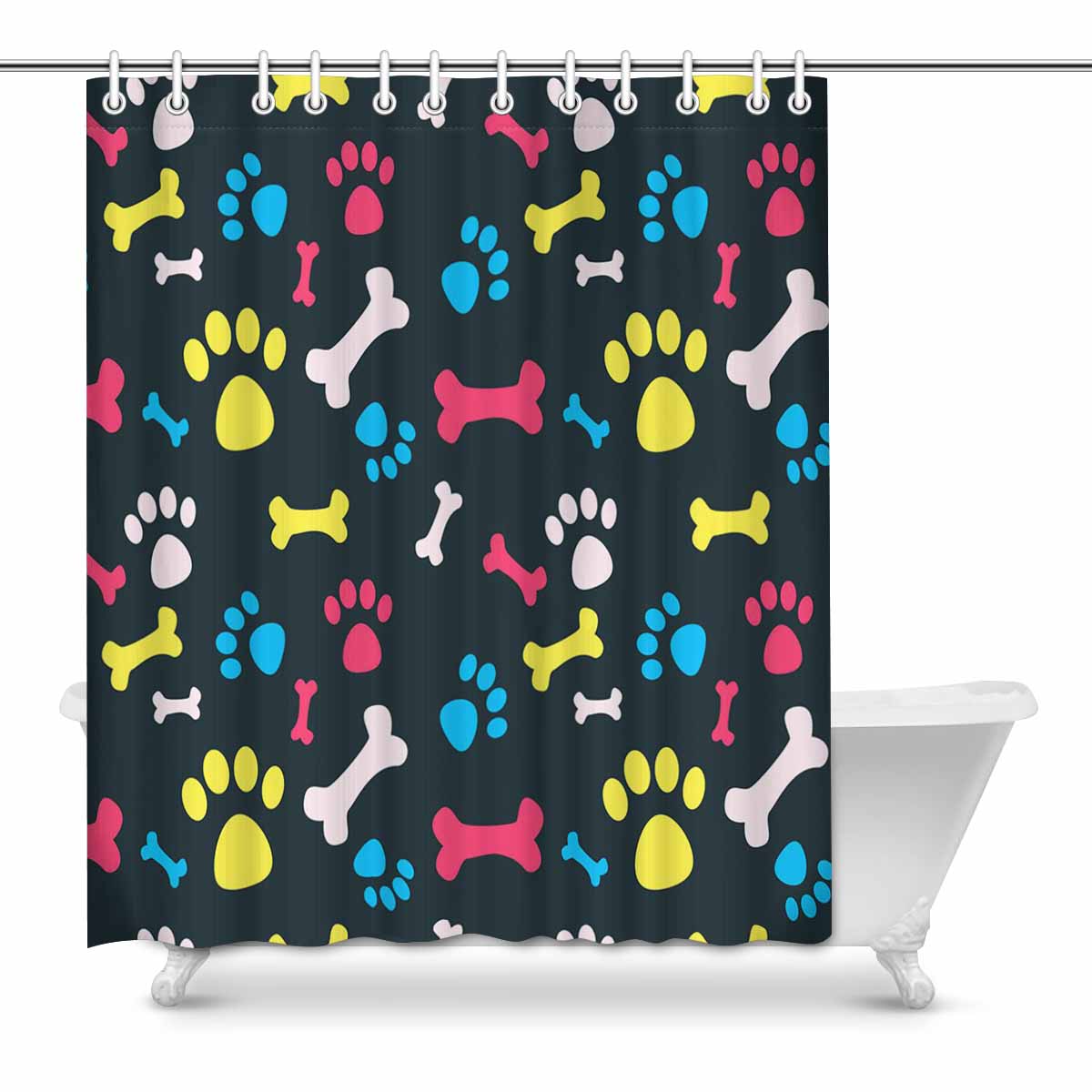 Bathroom Shower Curtain 60in x 72in with colorful dog paws bones