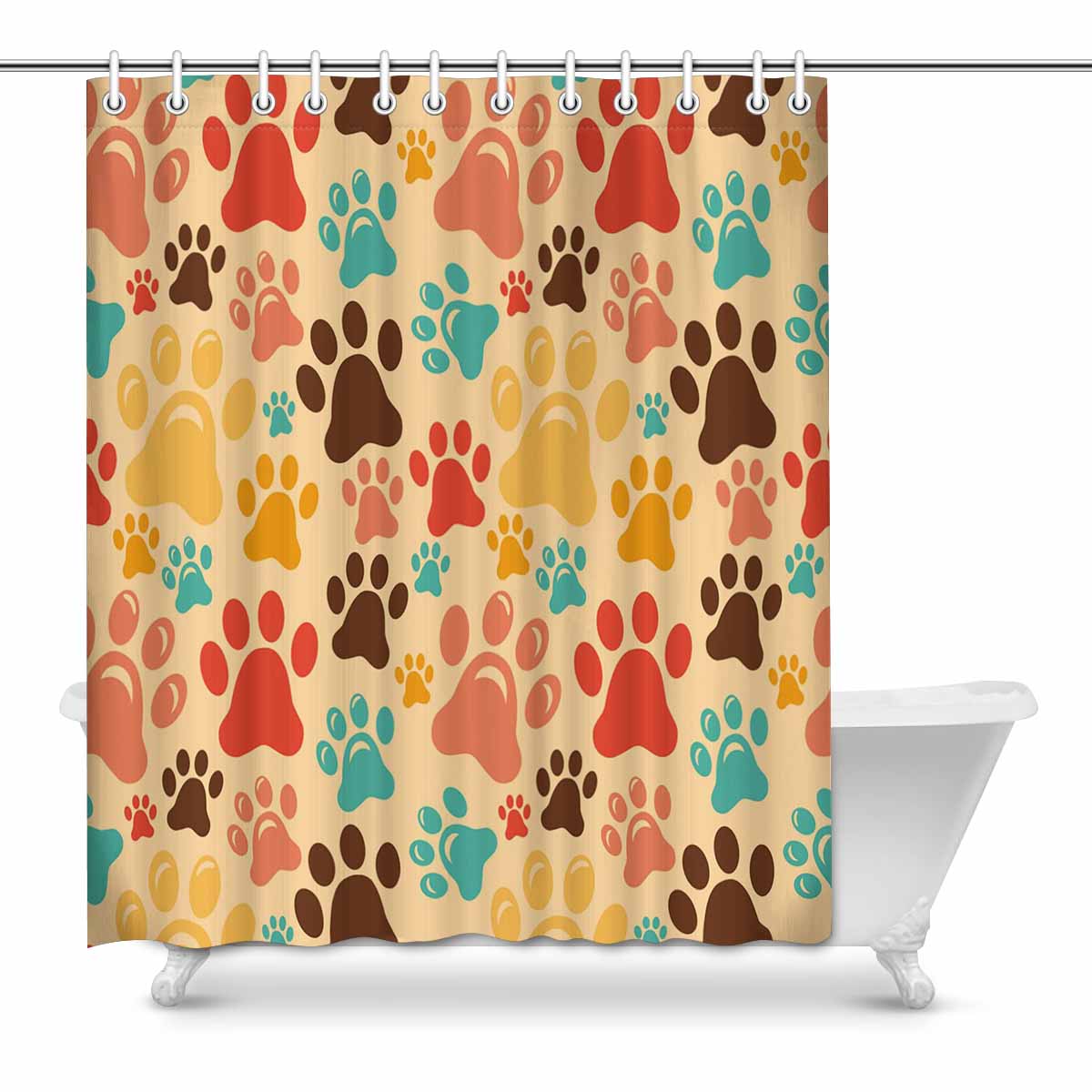 Bathroom Shower Curtain 60in x 72in with colorful dog paws pattern