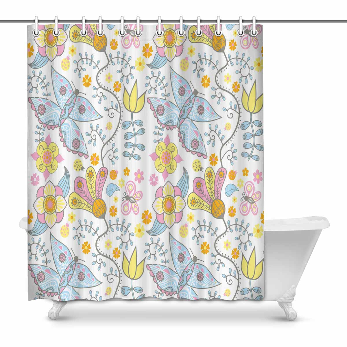 Bathroom Shower Curtain 60in x 72in with colorful flowers and butterflies