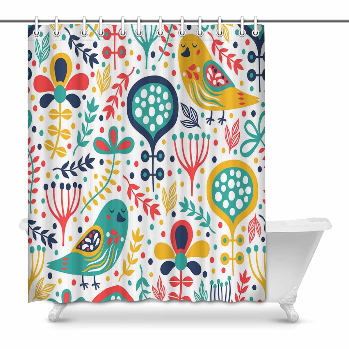 Bathroom Shower Curtain 60in x 72in with colorful flowers birds