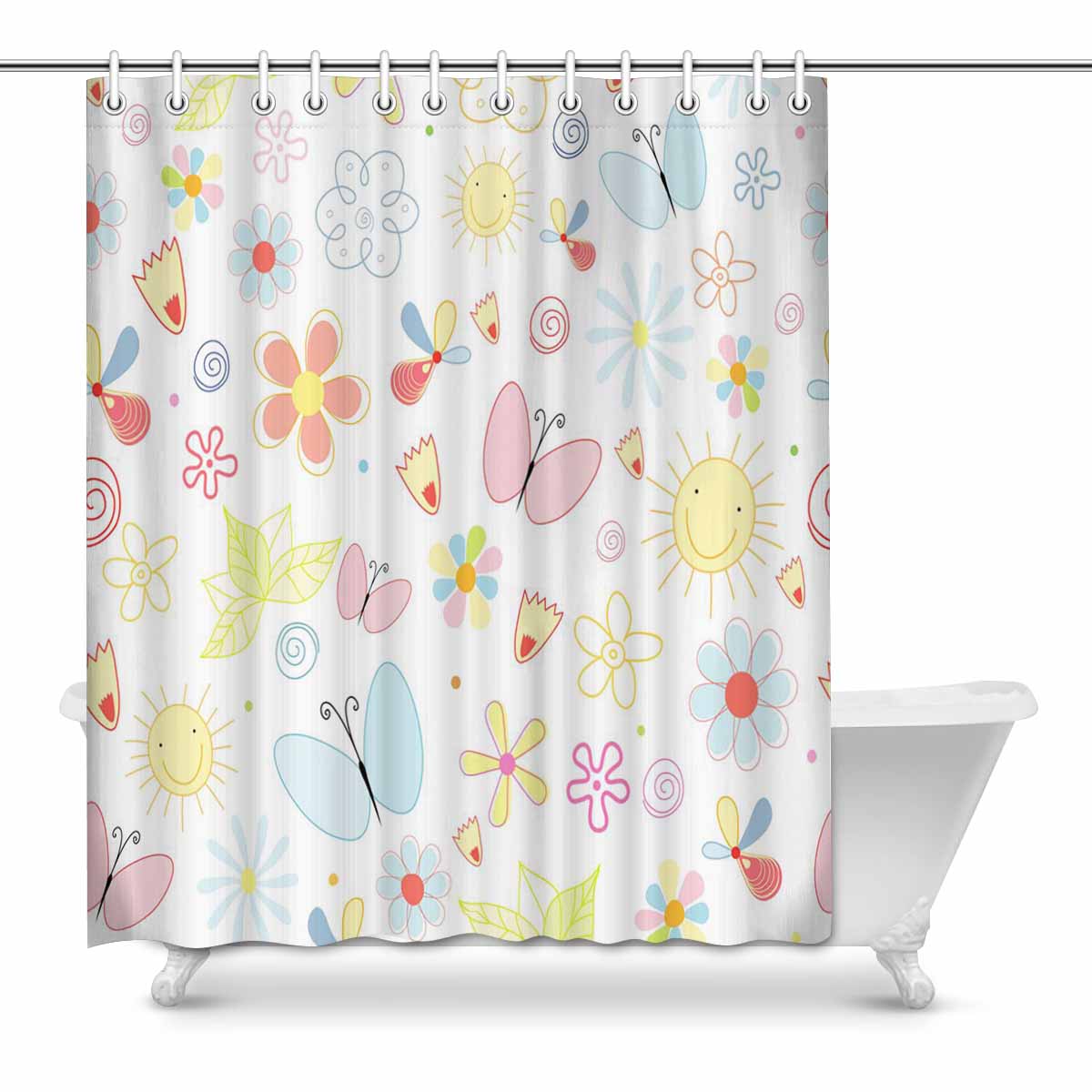 Bathroom Shower Curtain 60in x 72in with colorful flowers butterflies
