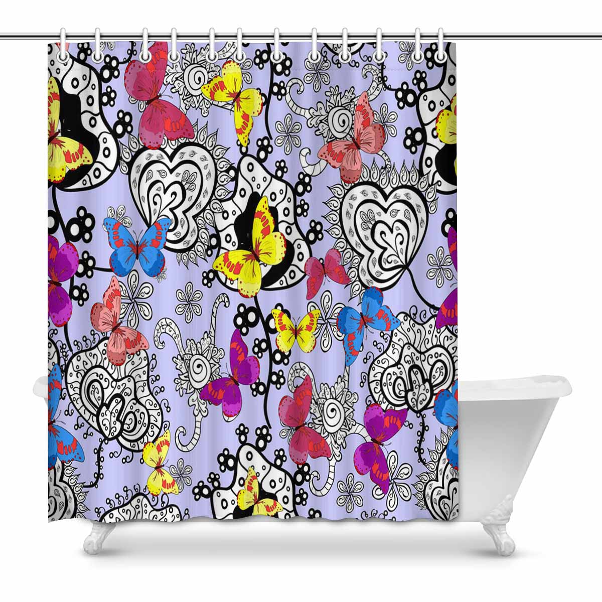 Bathroom Shower Curtain 60in x 72in with colorful flowers Butterfly