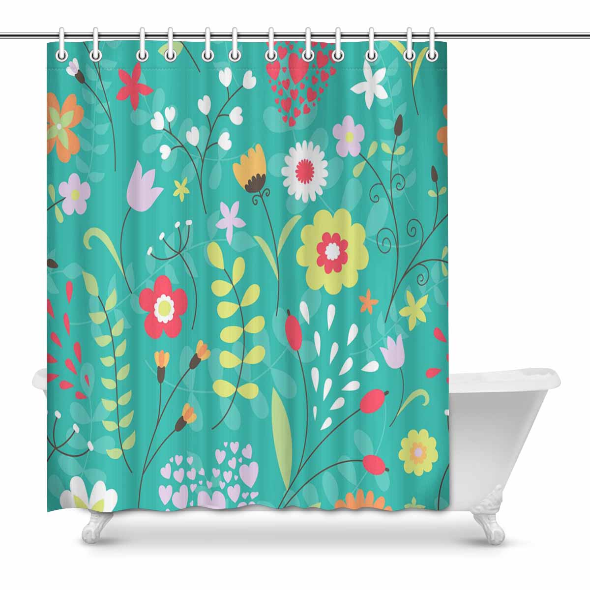 Bathroom Shower Curtain 60in x 72in with colorful flowers leaves