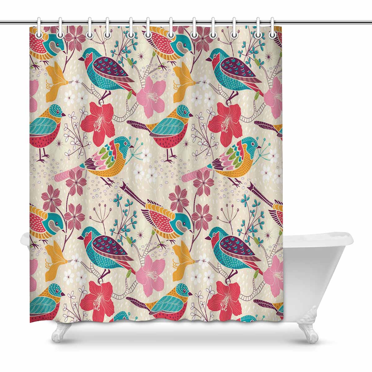 Bathroom Shower Curtain 60in x 72in with colorful flowers with birds