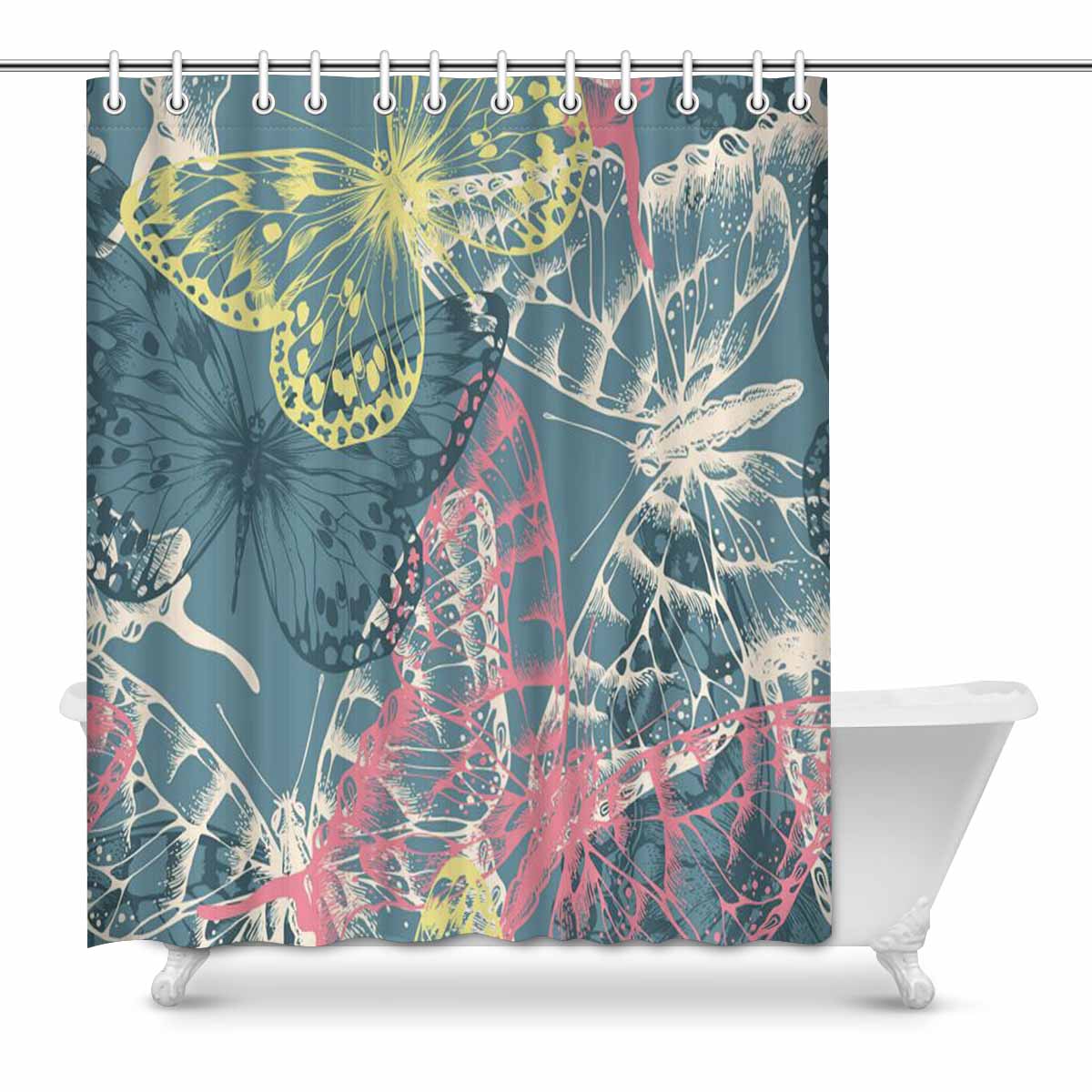 Bathroom Shower Curtain 60in x 72in with colorful flying butterflies pattern