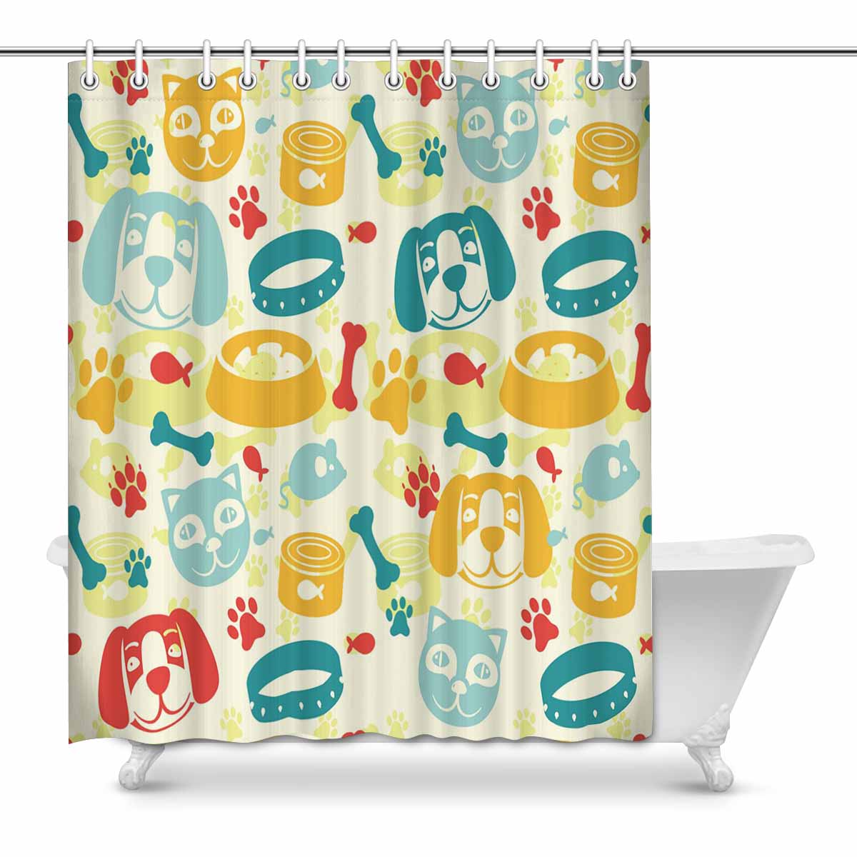Bathroom Shower Curtain 60in x 72in with colorful funny cat and dog pattern