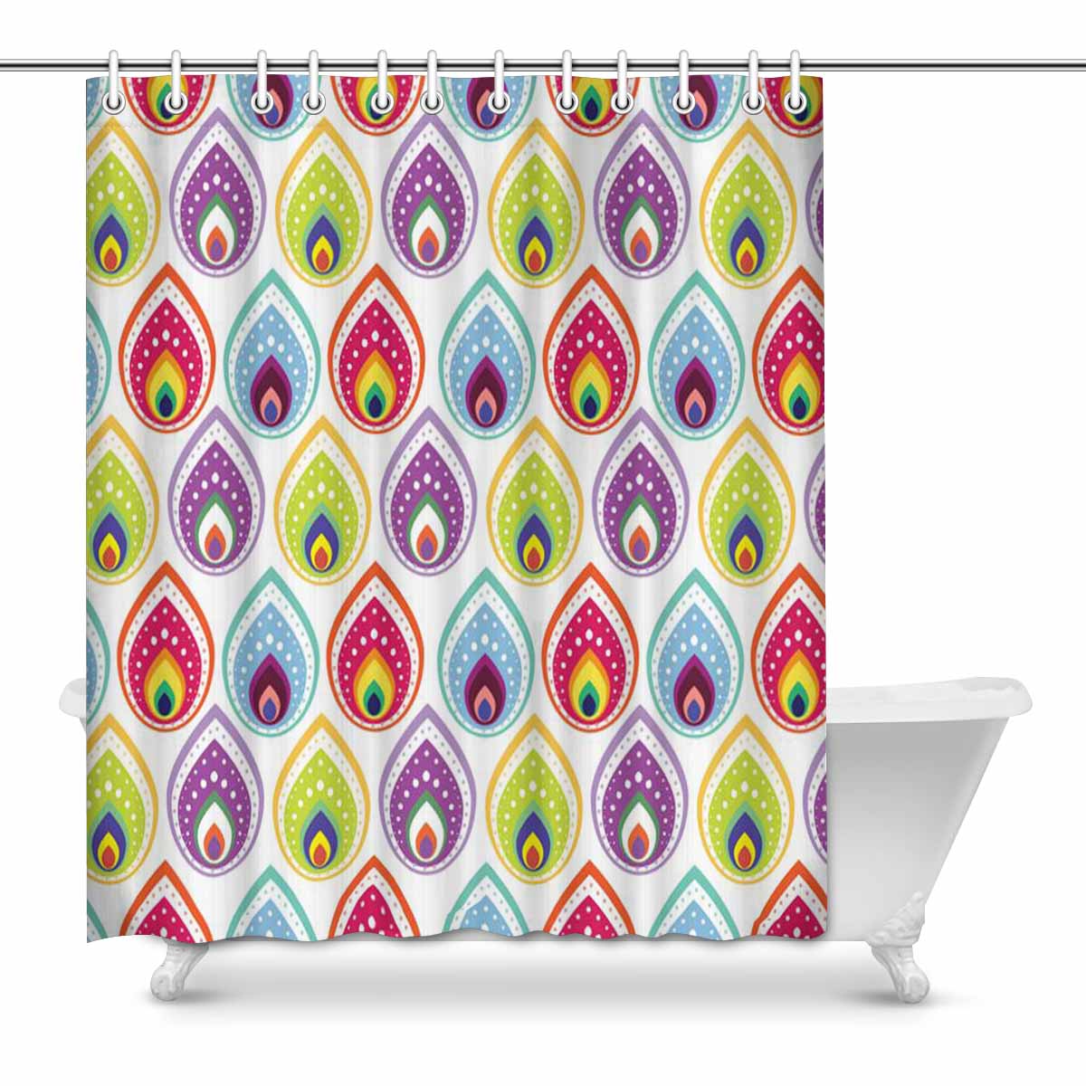 Bathroom Shower Curtain 60in x 72in with colorful Indian oil lamp