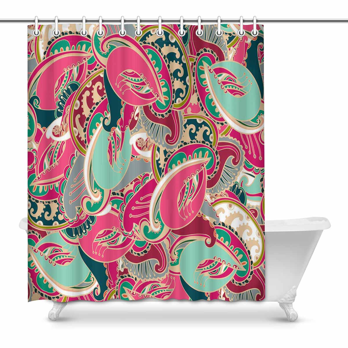 Bathroom Shower Curtain 60in x 72in with colorful Indian paisley pattern