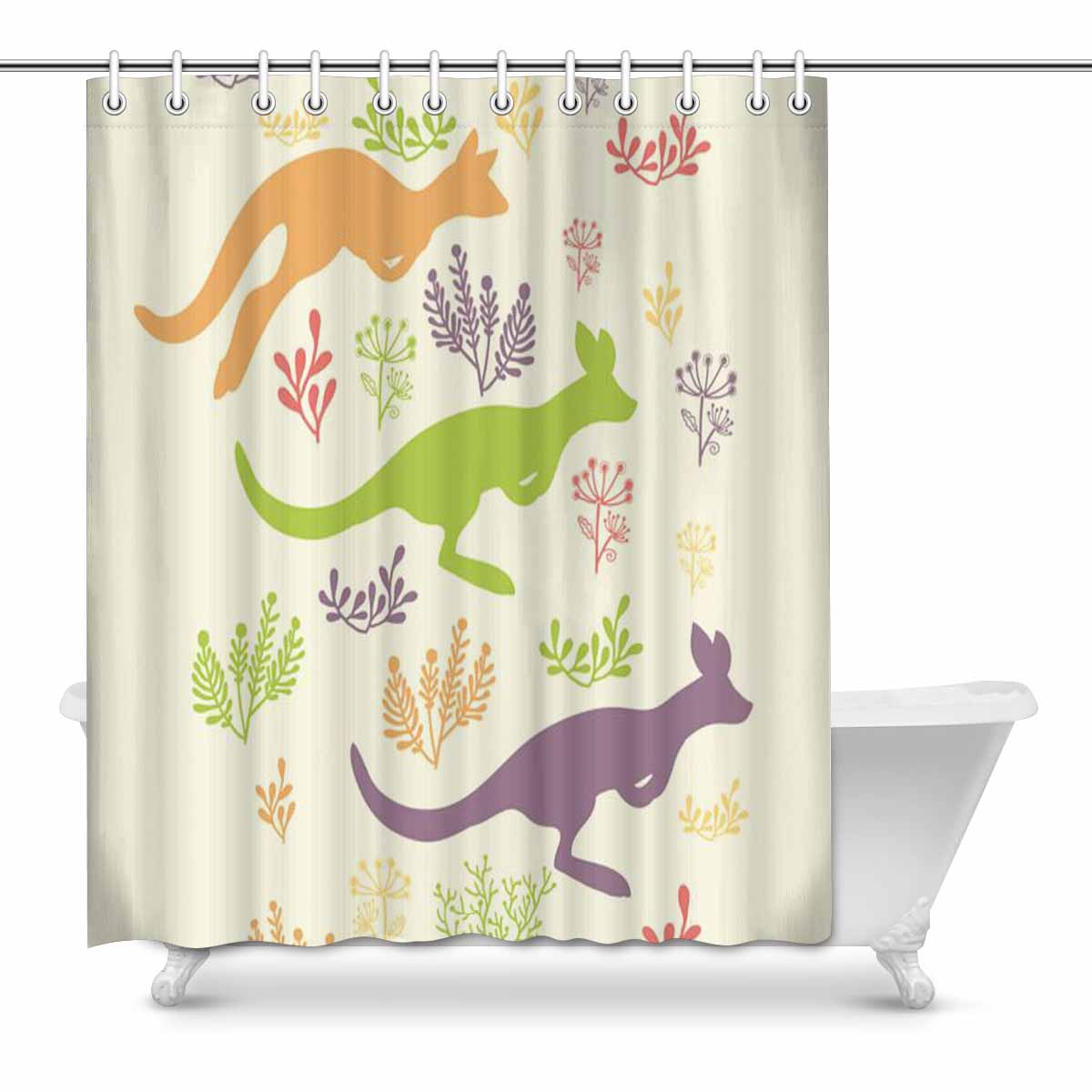 Bathroom Shower Curtain 60in x 72in with colorful Jumping kangaroo pattern
