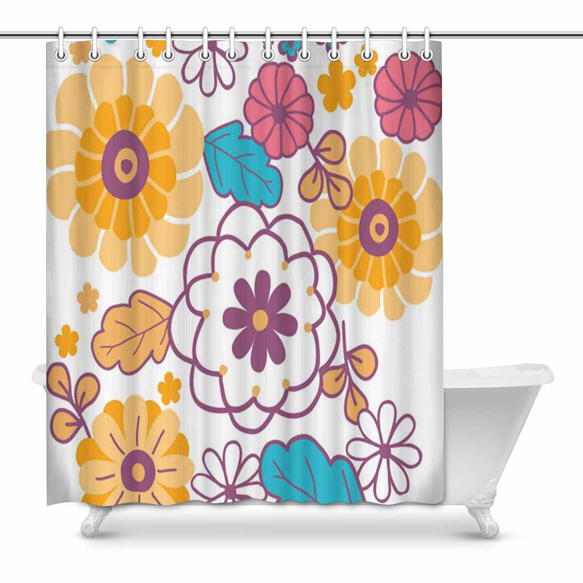 Bathroom Shower Curtain 60in x 72in with Colorful oriental flowers pattern