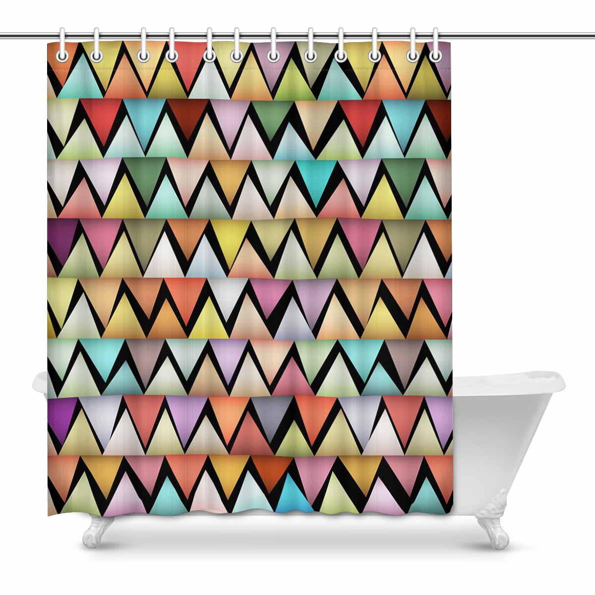 Bathroom Shower Curtain 60in x 72in with colorful pattern with zigzags