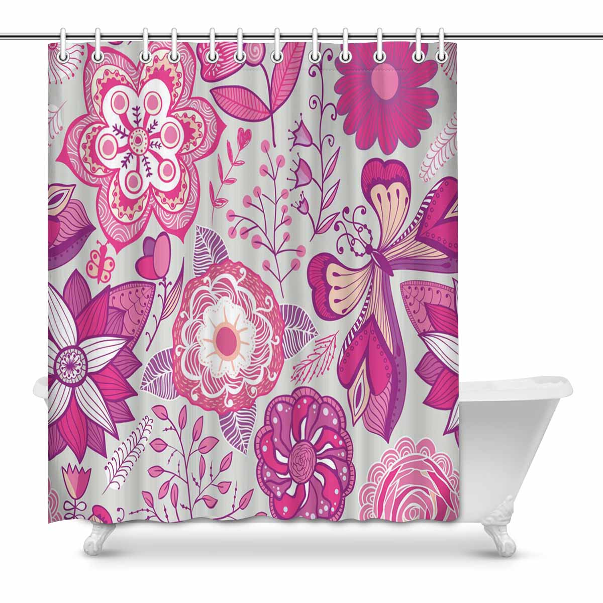 Bathroom Shower Curtain 60in x 72in with colorful pink flowers