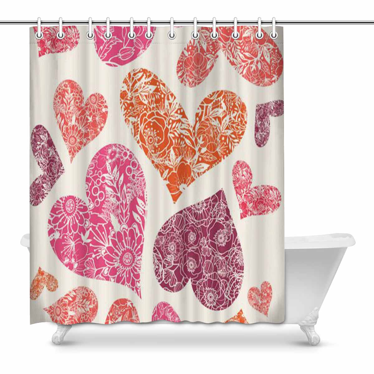 Bathroom Shower Curtain 60in x 72in with colorful Red Hearts pattern