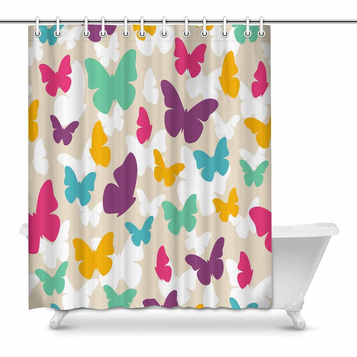 Bathroom Shower Curtain 60in x 72in with colorful retro Butterfly
