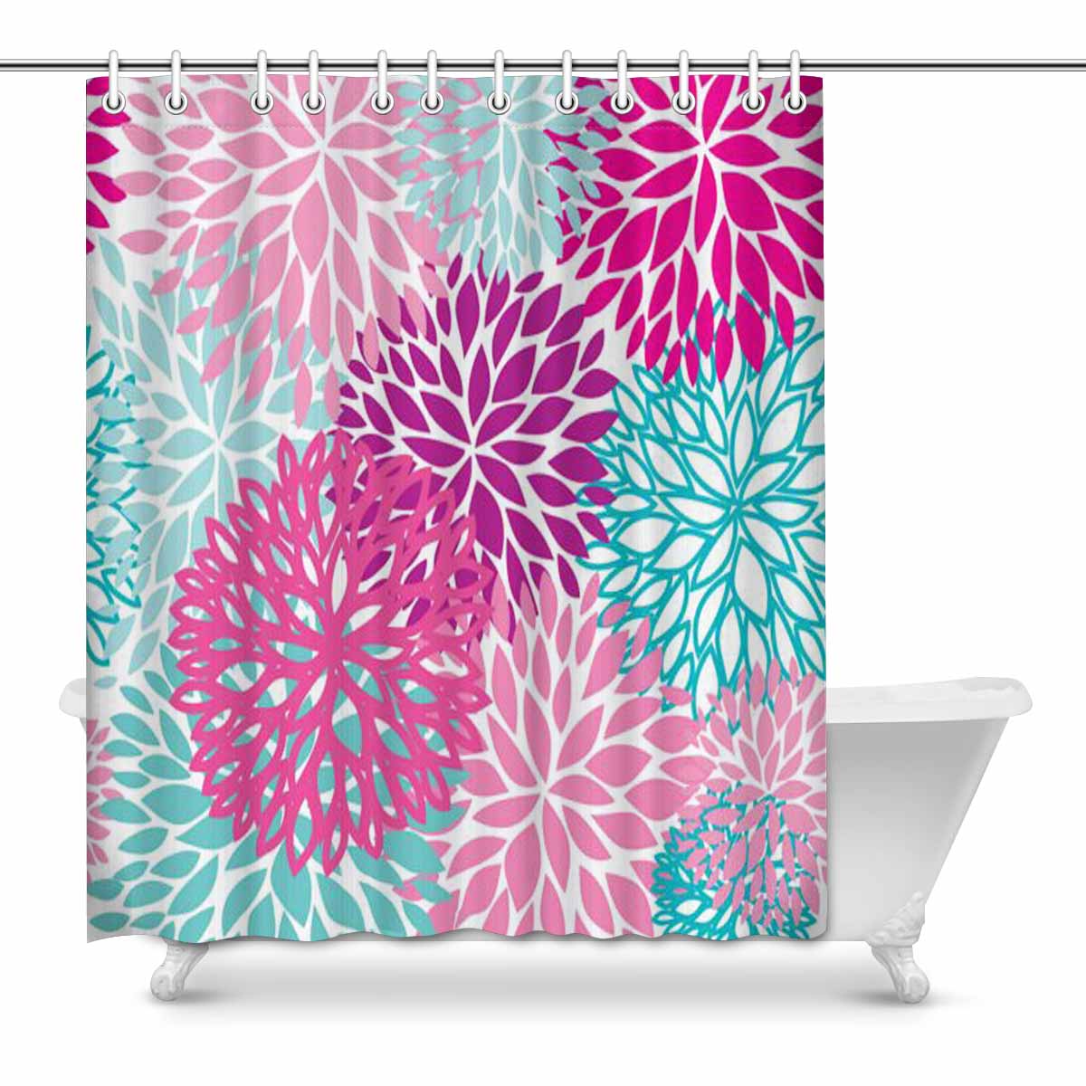 Bathroom Shower Curtain 60in x 72in with colorful retro flowers