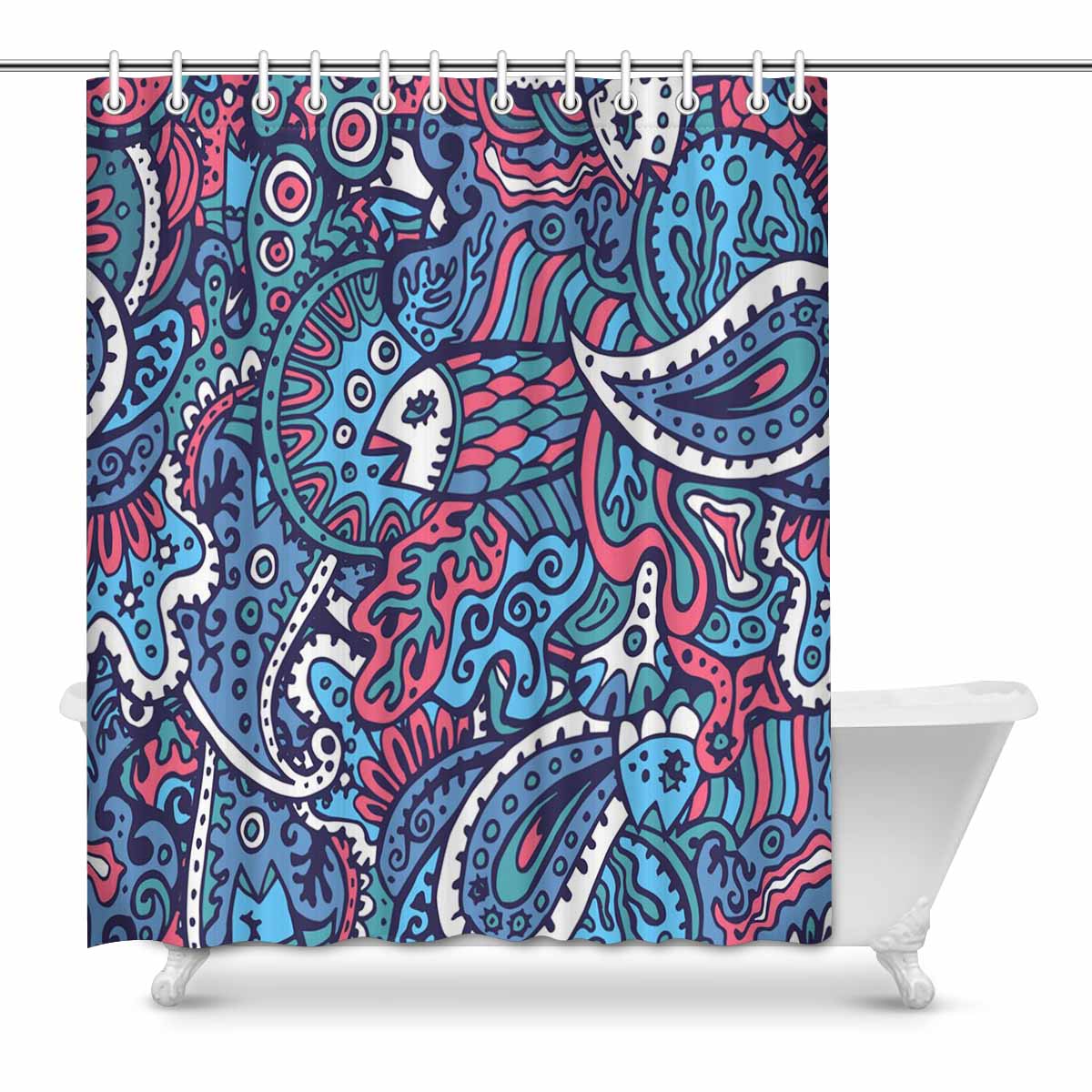 Bathroom Shower Curtain 60in x 72in with colorful Sea life