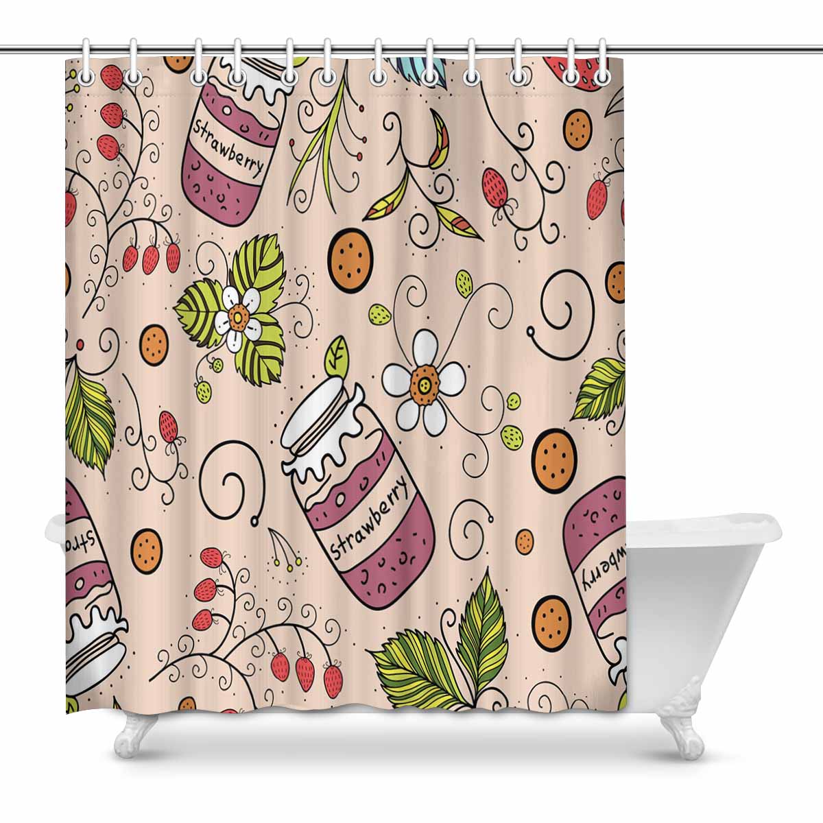 Bathroom Shower Curtain 60in x 72in with colorful sketched flowers food