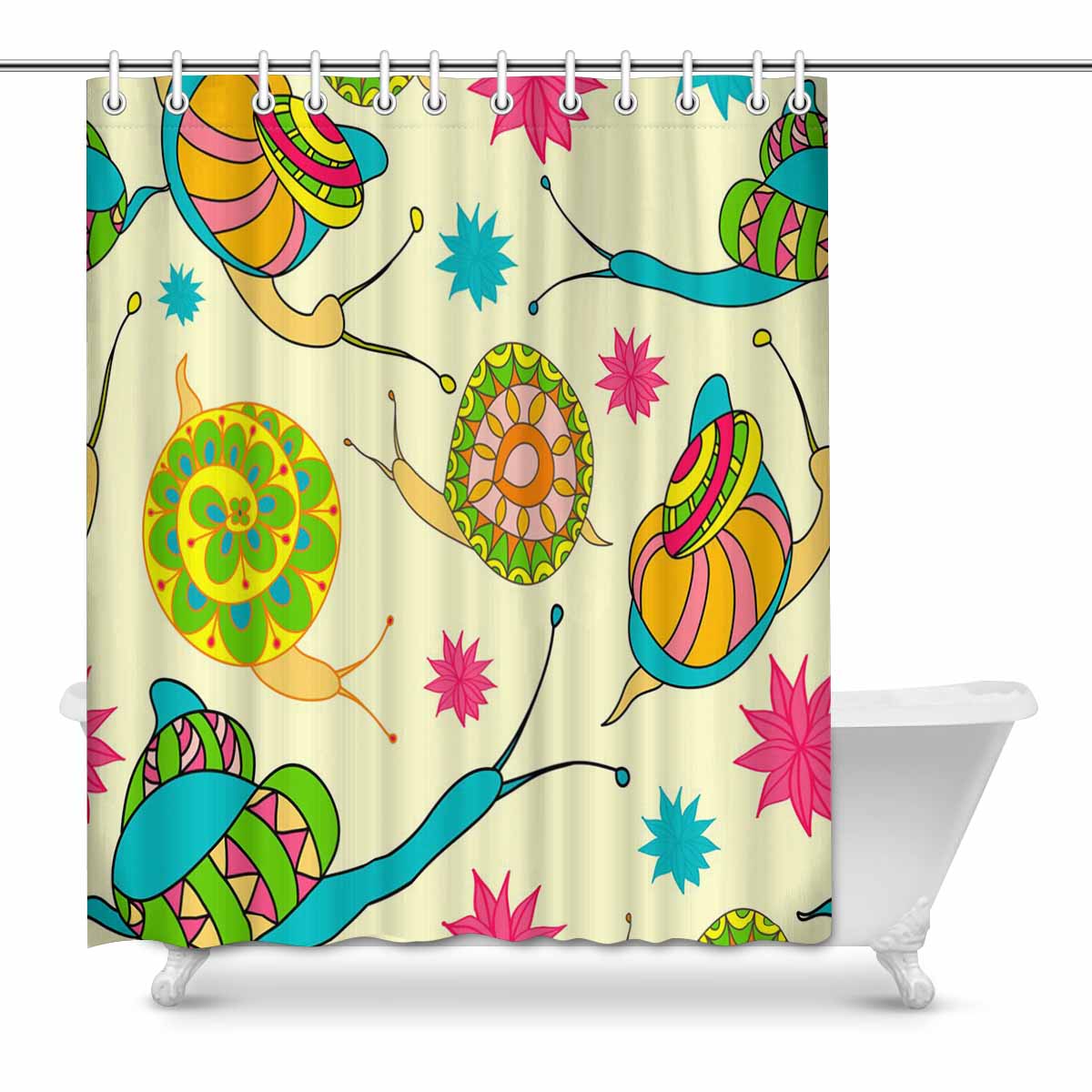 Bathroom Shower Curtain 60in x 72in with colorful spring cartoon snails pattern
