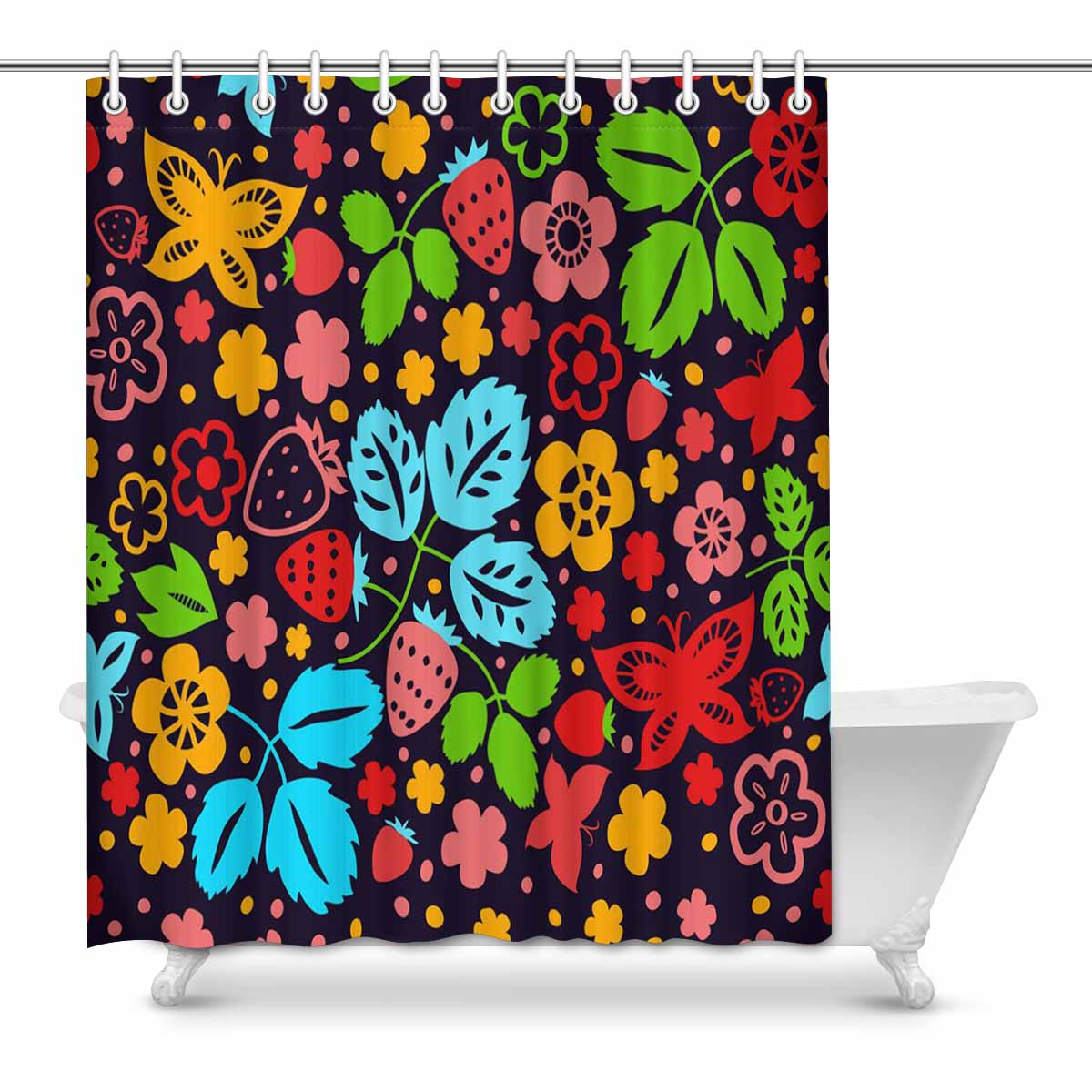 Bathroom Shower Curtain 60in x 72in with Colorful strawberry