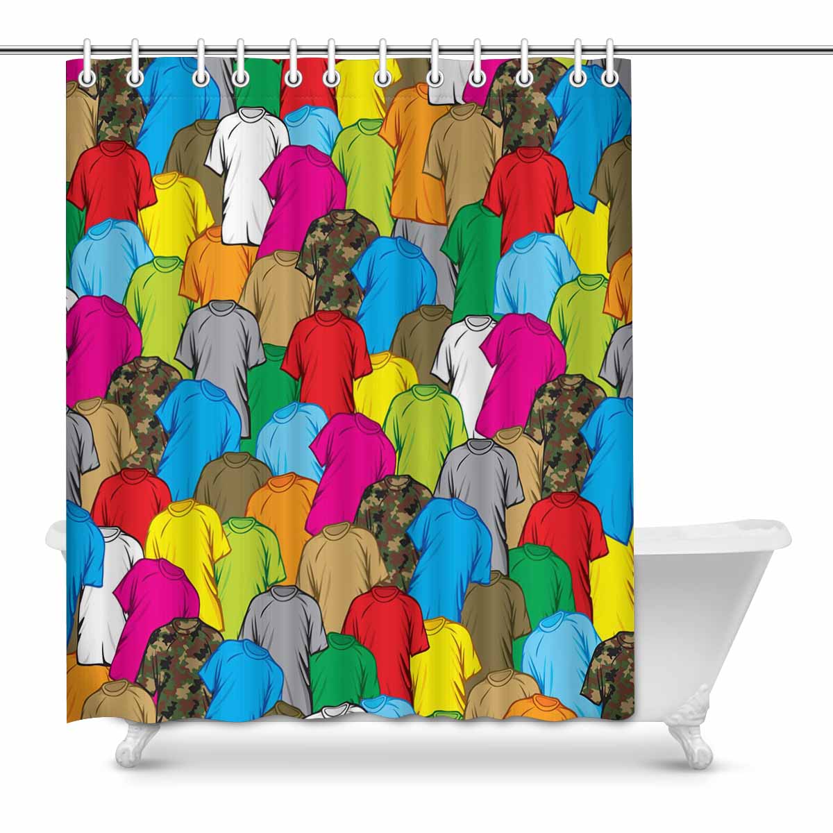 Bathroom Shower Curtain 60in x 72in with colorful t shirt designs pattern