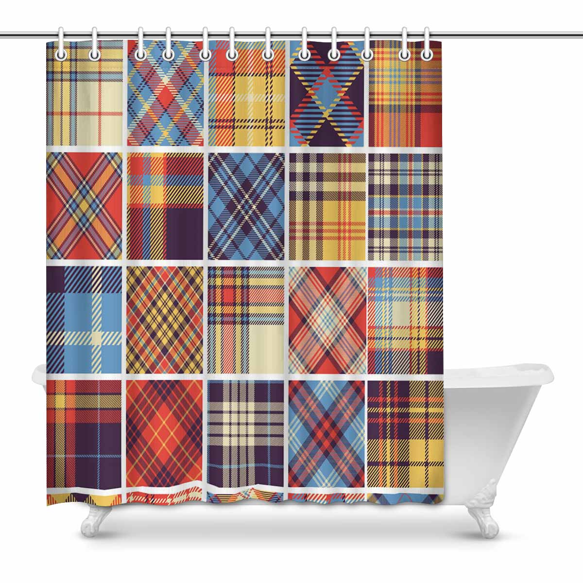 Bathroom Shower Curtain 60in x 72in with colorful tartan pattern