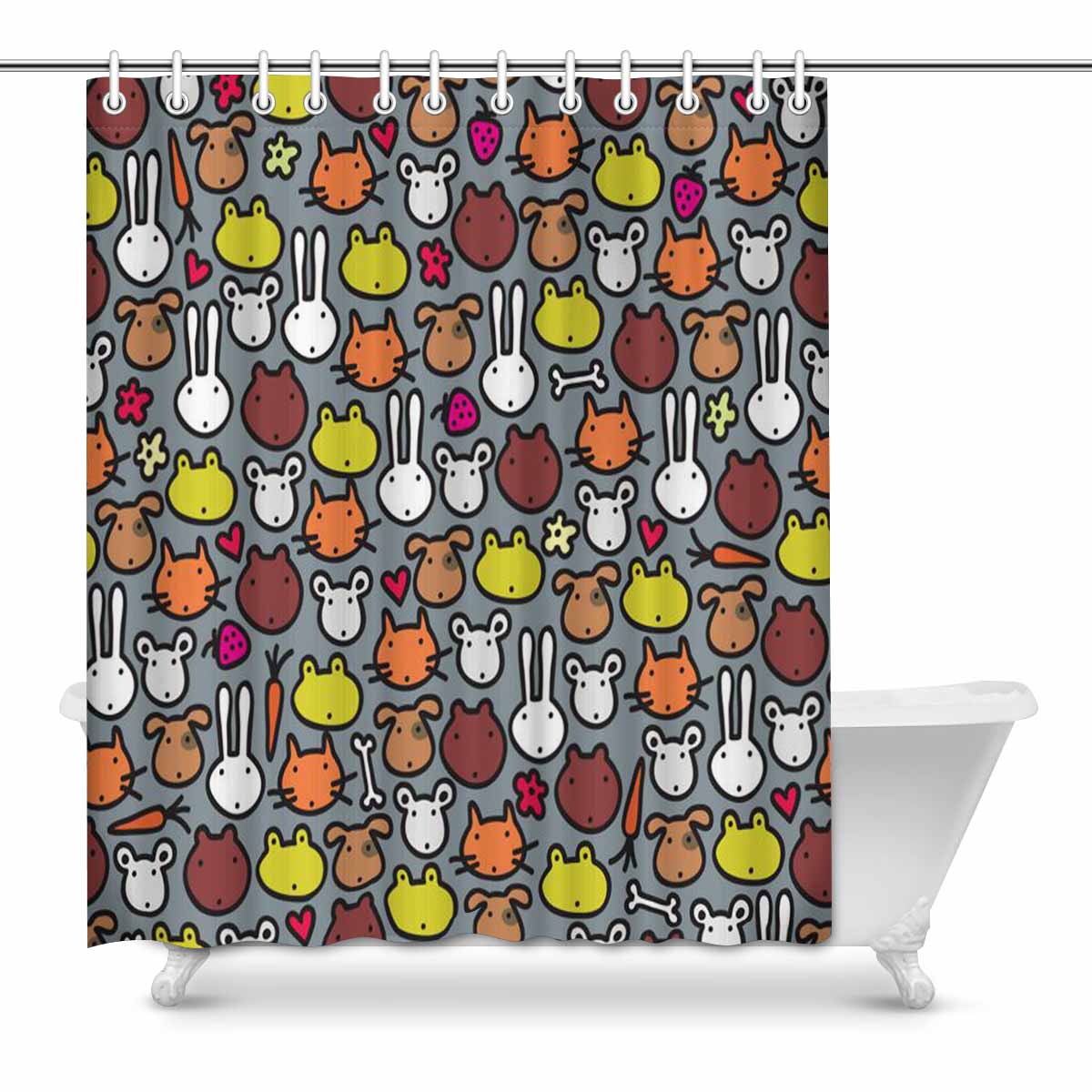 Bathroom Shower Curtain 60in x 72in with Cute animals
