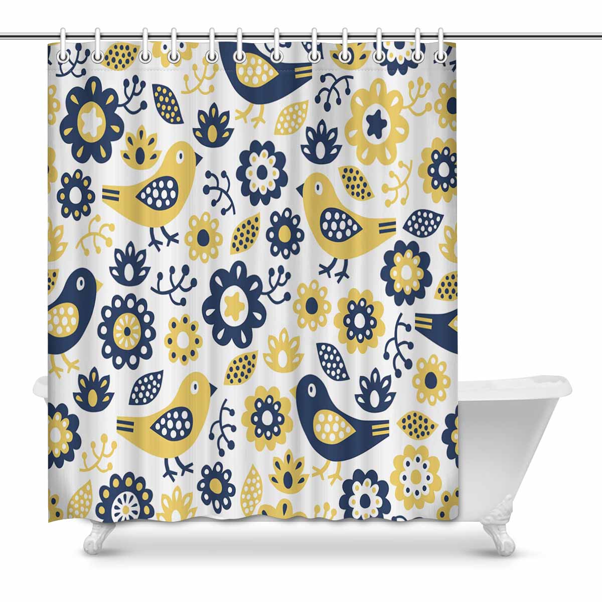 Bathroom Shower Curtain 60in x 72in with cute Bird and flower