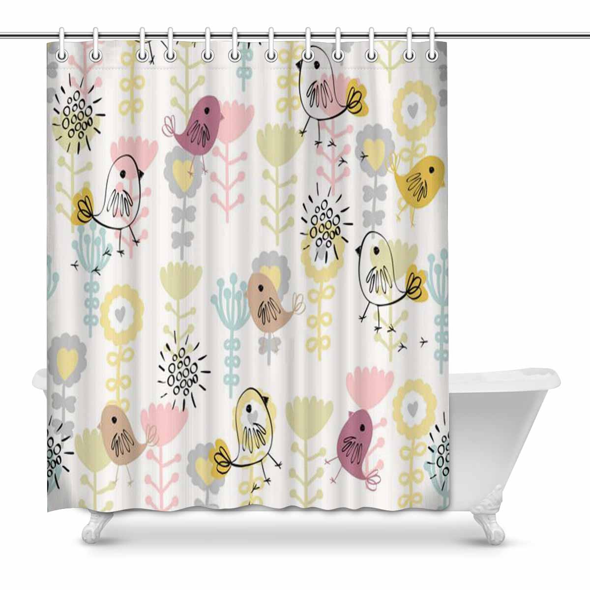 Bathroom Shower Curtain 60in x 72in with cute birds flowers pattern