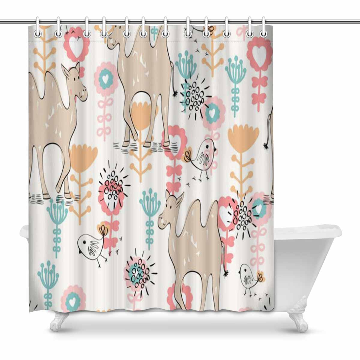 Bathroom Shower Curtain 60in x 72in with cute camel birds pattern