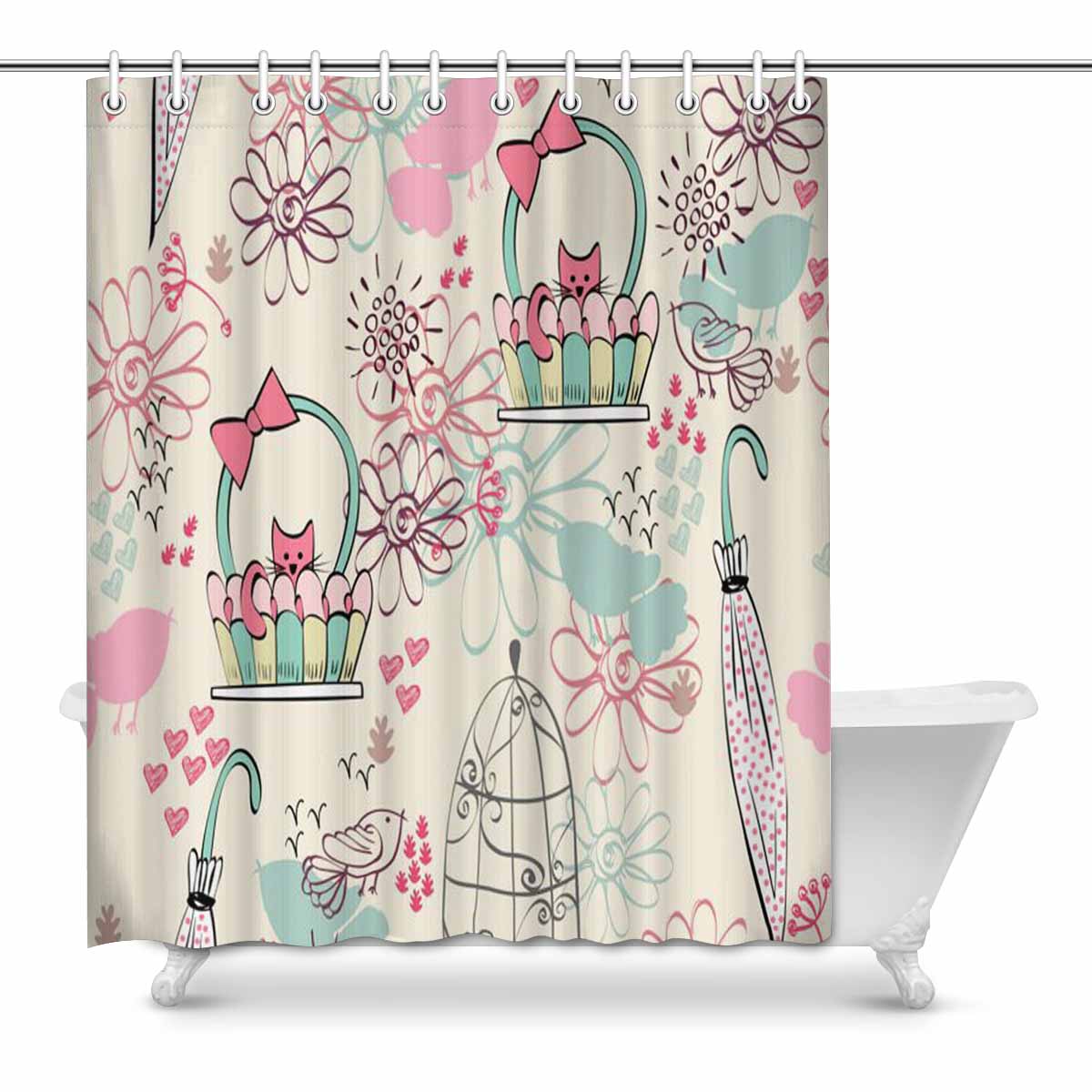 Bathroom Shower Curtain 60in x 72in with cute cats basket of flowers pattern